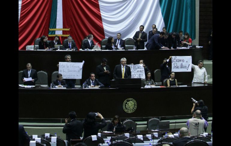 México | Las siete fracciones parlamentarias expresan sus posicionamientos en torno a la ley Diputados debaten Ley de Servicio Profesional Docente Las siete fracciones parlamentarias expresan sus posicionamientos en torno a la legislación Por: NTX 1 de septiembre de 2013 - 21:59 hs Diputados del PRD sostienen pancartas en contra de la reforma educativa durante su intervención en la sesión ordinaria. NTX / CIUDAD DE MÉXICO (01/SEP/2013).- La primera sesión ordinaria en la Cámara de Diputados inició desde las 20:20 horas de este domingo y continúa con con la aprobación de la orden del día que incluye debatir el dictamen de la iniciativa del decreto de la Ley General del Servicio Profesional Docente. Al comenzar la sesión, con un quórum de 467 diputados y diputadas, el presidente de la Mesa Directiva de la Cámara de Diputados, Ricardo Anaya Cortés, informó al pleno que el dictamen elaborado por la Comisión de Educación Pública y Servicios Educativos está publicado ya en la gaceta parlamentaria. Con ello se cumple el trámite de publicidad, y se aprobó entrar de inmediato al debate de este dictamen. El presidente de dicha comisión, el perredista Jorge de la Vega Membrillo, fue el encargado de presentar la propuesta legislativa, y al iniciar su intervención diputados del PRD y de otros partidos de izquierda se colocaron a sus espaldas con cartulinas con leyendas de rechazo a la iniciativa. Entre protestas de diputados de su partido, leyó el contenido de lo que será el adéndum que contiene los cambios a esta legislación que finca las bases para la evaluación de los maestros. El documento anexo con más de 10 adecuaciones fue leído por el diputado del Partido de la Revolución Democrática (PRD), quien aseguró que se integró diversas propuestas de legisladores, autoridades educativas, al magisterio en sus diversas corrientes sindicales y especialistas. De la Vega Menbrillo explicó que dentro de los cambios se marcó que las evaluaciones no tendrán acciones punitivas y que por el contrario sea contextualizadas y diferenciadas. Antes de los posicionamientos de las siete fracciones parlamentarias representadas en esta soberanía, se presentaron y rechazaron cuatro mociones suspensivas, presentadas por el vicecoordinador de Movimiento Ciudadano, Ricardo Mejía Berdeja. Las otras mociones suspensivas que pedían se suspendiera este proceso legislativo para aprobar esta iniciativa, fueron de los diputados del PRD, Javier Orihuela, quien criticó que no se atendiera a los maestros en su sexto acercamiento, y Silvano Aquino Blanco, quien calificó de ilegal este procedimiento para votar dicha iniciativa. Al fundamentar el dictamen, Aquino Blanco solicitó a la Mesa Directiva poner el documento a consideración de los diputados y efectuar "las correcciones y ajustes que se requieren para procurar la certeza y calidad jurídica del decreto". De la Vega Membrillo afirmó que las modificaciones fortalecen el dictamen, sobre todo en lo referente a la procuración de los derechos constitucionales de los trabajadores de la educación y garantías "para que no se den acciones punitivas a través de la evaluación". Indicó que se modificó el Artículo cuarto, fracción 18, inciso C, del dictamen, y establece que el nombramiento de base se dará por tiempo indeterminado, en términos de la Ley General del Servicio Profesional Docente y de la legislación laboral. Comentó que en el Artículo 22 se señala "en la educación básica y media superior, el ingreso a una plaza docente dará lugar a un nombramiento definitivo de base, después de seis meses de servicio, sin nota desfavorable en su expediente". Asimismo, se le agregó al Artículo 24, referente a los concursos de oposición, que en la educación básica el perfil qué debe tener el docente didáctico pedagógico corresponderá al académico con formación docente pedagógica o áreas afines a los niveles educativos, privilegiando el perfil pedagógico docente de los candidatos. Además, se plantea en el Artículo 27, que durante el periodo de inducción, las autoridades educativas locales brindarán las orientaciones y los apoyos pertinentes para fortalecer las capacidades de liderazgo y gestión escolar. Al término del periodo de inscripción, la autoridad educativa local evaluará el desempeño del personal para determinar si cumple con las exigencias propias de la función directiva. Si el personal cumple con dichas exigencias se le otorgará nombramiento definitivo, explicó. Jorge de la Vega comentó que en el Artículo 83 se define que las relaciones de trabajo del personal a qué se refiere la ley, o las autoridades educativas y organismos descentralizados, se regirán por la legislación laboral aplicable, salvo por lo dispuesto en esta ley. Además, el personal que sea separado de su encargo, con motivo de la aplicación de esta ley, podrá impugnar la resolución respectiva ante los órganos jurisdiccionales competentes en materia laboral. "Por otro lado, un segundo eje que se planteó, entre otros, la Comisión de Educación, es sobre la evaluación, que ésta debía de ser contextualizada que no punitiva", expuso. Indicó que se modificó también el Artículo 7 de la ley, espejo del Artículo 28 de la Ley del Instituto Nacional para la Evaluación de la Educación (INEE), aprobada el 22 de agosto, respecto a los atributos del servicio profesional docente. Expresó que corresponderá al INEE expedir los lineamientos a los que se sujetarán las autoridades educativas, al tiempo que destacó que deberá regular y promover la participación de observadores de la sociedad civil en los procesos de aplicación de instrumentos de los concursos de oposición, para el ingreso y la promoción. Con esto "se evita, a partir y a través del instituto, que la autoridad, con la evaluación, puede ejercer acciones punitivas; expedir lineamientos a los que se sujetarán las autoridades educativas", subrayó. El diputado in