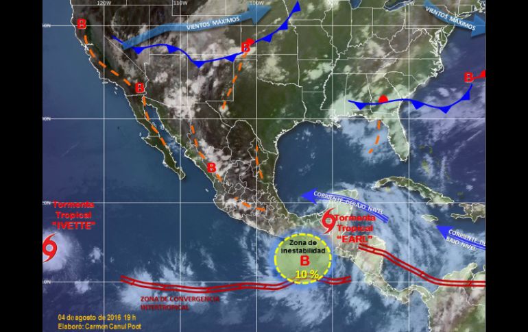 VILLAHERMOSA, TABASCO (04/JUL/2016).- La tormenta tropical “Earl” ingresó al país a las 17:30 horas de este jueves, tiempo del centro de México, a 20 kilómetros al este-sureste del Triunfo, Tabasco.El sistema actualmente se localiza a 45 kilómetros al noreste de Balancán, Tabasco, y a 95 km al sureste de Ciudad del Carmen, Campeche.Se desplaza hacia el oeste a 17 kilómetros por hora (km/h) con vientos máximos sostenidos de 65 km/h y rachas de hasta 85 km/h, informó la Comisión Nacional del Agua (Conagua) a través del Servicio Meteorológico Nacional (SMN).Por lo anterior, se pronostican lluvias intensas con tormentas torrenciales en localidades de Chiapas, Veracruz, Tabasco y Campeche; intervalos de lluvias muy fuertes con tormentas intensas en regiones de Oaxaca y Quintana Roo, e intervalos de chubascos fuertes con tormentas muy fuertes en áreas de Yucatán, además de vientos fuertes con rachas de hasta 65 km/h en las costas de Tabasco, Campeche y Quintana Roo, así como oleaje elevado de hasta 2.5 metros en sus costas.–Descartan peligro en TabascoEl secretario de Gobierno, Gustavo Rosario Torres, descartó que Tabasco se encuentre en una situación de peligro o alerta roja a causa de la tormenta tropical “Earl”, afirmando que la intensidad de este fenómeno meteorológico se ha degradado al tocar tierra y además los niveles de los ríos y del Sistema de Presas se encuentran muy por debajo de su escala máxima, de manera que la situación está controlada.Al encabezar la segunda sesión de la Comisión Estatal de Fenómenos Hidrometeorológicos para la Atención de Emergencias, el funcionario hizo un llamado a la población a no alarmarse ni caer en pánico y explicó que la alerta preventiva emitida es con el fin de coordinar esfuerzos entre las instituciones relacionadas con la protección civil para prevenir afectaciones y dar atención a la ciudadanía.Rosario Torres afirmó que el gobierno estatal, en conjunto con la autoridades federales, los municipios y del Ejército Mexicano “estamos preparados para auxiliar y atender a la población por si el volumen de los ríos crecen y las comunidades de las zonas bajas se ven afectadas”, precisó.