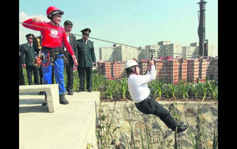 México | La Secretaría de Medio Ambiente califica el proyecto como uno de los más importantes Ejecutivo inaugura Bioparque en el Distrito Federal La Secretaría de Medio Ambiente califica el proyecto como uno de los más importantes Por: SUN 30 de noviembre de 2012 - 01:56 hs Bromista. Antes de lanzarse, el Mandatario dijo: “Va a estar fuerte el trancazo”. NTX / CIUDAD DE MÉXICO (30/NOV/2012).- Con más de 11 meses de retraso, el Presidente Felipe Calderón inauguró el Bioparque San Antonio, considerado por la Secretaría de Medio Ambiente y Recursos Naturales (Semarnat) como uno de los proyectos más importantes de la administración. Mientras los niños invitados de la Secundaria Técnica Número 8 miraban con nostalgia desde las pantallas, el Primer Mandatario aprovechó para quitarse el saco y tirarse de las dos nuevas tirolesas del predio, de 100 y 150 metros. Antes de emprender el vuelo, el Mandatario bromeó “va a estar fuerte el trancazo”. Este parque, que se anunció en marzo de 2011, cuenta con seis hectáreas que alojan una biblioteca, un foro, un lago, un vivero, una ciclopista, un muro para escalar y un andador especial para discapacitados. Calderón Hinojosa dijo que este nuevo espacio surgió con la idea de rehabilitar un predio deteriorado, ahora orientado a respetar los recursos naturales y con ello mejorar la calidad de vida de los habitantes de la Ciudad de México. El lote fue adquirido por el Gobierno federal en 1987, después de que la cementera Tolteca retirara su planta, pero se utilizó, principalmente, para reubicar los escombros dejados tras el temblor de 1985. “Lo compra el Gobierno en el 87, y desde entonces se dijo que iba a haber un parque. Ahora sí que se tardó un poquito el Gobierno: 20 años. Entonces, fue que después de que otros gobiernos, uno tras otro, habían propuesto esta idea, nosotros nos decidimos a hacerla pero, ahora sí, en serio”. LA CIFRAEstaba en el olvido 1987 el año en el que el Gobierno federal compró el predio en el que se construyó el parque. 11 meses más duraron los trabajos para que el centro recreativo fuera terminado oficialmente. Temas Gobierno de México Medio Ambiente Felipe Calderón Semarnat Lee También Reformas a Ley de Amparo no limita derechos ciudadanos Festival del Pan de Muerto en CDMX: Fechas, horarios y actividades México vs Argentina: ¿Quién ganará el partido según la IA? CDMX, con pronóstico de lluvias fuertes hoy sábado Recibe las últimas noticias en tu e-mail Todo lo que necesitas saber para comenzar tu día Registrarse implica aceptar los Términos y Condiciones