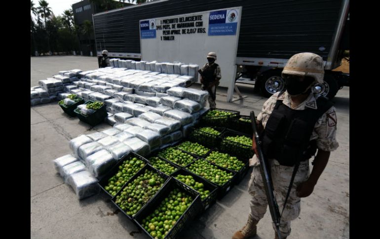 México | Uno de los más grandes aseguramientos de la historia de esta droga Ejército asegura el segundo mayor volumen de goma de opio En un comunicado, la Sedena precisó que en reconocimientos terrestres aseguraron 200 kilos 300 gramos de un líquido oscuro con olor penetrante a goma de opio entre otros Por: NTX 8 de agosto de 2011 - 20:21 hs La Sedena resaltó que con este aseguramiento se dio un golpe contundente a la comercialización de drogas. NTX / CIUDAD DE MÉXICO (08/AGO/2011).- Elementos del Ejército mexicano comisionados a la Novena Zona Militar de Sinaloa aseguraron casi 230 kilogramos de opio en diferentes presentaciones, considerado uno de los más grandes aseguramientos de la historia de esta droga. La Secretaría de la Defensa Nacional (Sedena) indicó que el 6 de agosto, al efectuar reconocimientos terrestres en las cercanías del poblado Saca de Agua, municipio de Badiraguato, Sinaloa, también se aseguraron más de 21 kilogramos de heroína. En un comunicado, precisó que en esa acción se aseguraron 200 kilos 300 gramos de un líquido oscuro con olor penetrante a goma de opio; así como 99 kilos 860 gramos de goma de opio en pasta semisólida y siete kilos 900 gramos de la misma droga en pasta sólida. Asimismo, se decomisaron 21 kilos 100 gramos de heroína; cinco kilos 800 gramos de carbonato (utilizado para la elaboración de heroína); 637 kilos 900 gramos de mariguana empaquetada; 22 kilogramos de semilla de mariguana y un kilo 200 gramos de semilla de amapola. La Sedena refirió que un litro de goma de opio contiene alrededor de 60 por ciento de esa sustancia, por lo que 200 mil 300 litros arrojarían 120 mil 180 kilogramos de opio, que sumados a los 107 mil 760 kilogramos en pasta de goma de opio, suman 227 mil 940 kilogramos de opio. La Sedena resaltó que con este aseguramiento se dio un golpe contundente a la comercialización de drogas y se evitó que la delincuencia organizada obtuviera la cantidad de 209 millones 70 mil 580 pesos de recursos ilícitos. Temas Ejército Estados Sinaloa Lee También ALERTA en Jalisco por formación de ciclón "Raymond" Esta es la última guerra que Trump resolvió, según él mismo Las guerras que Trump dice haber resuelto y por las que merece el Nobel ¿Cuándo la tormenta tropical "Raymond" estará cerca de Jalisco? Recibe las últimas noticias en tu e-mail Todo lo que necesitas saber para comenzar tu día Registrarse implica aceptar los Términos y Condiciones