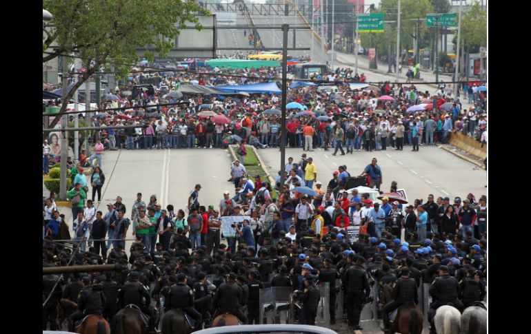 México | Hasta el momento no se reportan afectaciones a salidas de vuelos comerciales El GDF negocia con CNTE retirar el bloqueo en aeropuerto Hasta el momento no se reportan afectaciones a salidas de vuelos comerciales o cancelaciones Por: SUN 5 de septiembre de 2013 - 15:22 hs Registran casi cinco mil maestros los que se manifiestan en el aeropuerto. NTX / CIUDAD DE MÉXICO (05/SEP/2013).- El secretario de Gobierno del Distrito Federal, Héctor Serrano, informó que los concertadores a su cargo negocian con los casi cinco mil maestros que se manifiestan en boulebard Puerto Aéreo que se retiren antes de la hora pico, entre 17:00 y 19:00 horas, a fin de no asfixiar la zona. Detalló que "el tope de granaderos" de la ciudad -mil 800- están desplegados en el área, bajo los principios del protocolo de Contención, el cual sólo incluye medidas de repliegue y no acciones en contra de los manifestantes. También explicó que se ha mantenido en contacto todo el tiempo y ha trabajado de manera coordinada con el subsecretario de Gobernación, Luis Miranda. Aseguró que hasta el momento no tiene reporte de afectaciones a salidas de vuelos comerciales o cancelaciones, ya que otras rutas alternas permiten el acceso al aeropuerto. El funcionario precisó que en automático hay denuncias contra los maestros por daños a propiedades del gobierno del Distrito Federal, como la malla ciclónica afectada en las manifestaciones de esta semana. Serrano dijo que quienes resulten responsables de estos daños, como otros a particulares, luego de hacer las averiguaciones previas tendrán que asumir el peso de la ley. Temas Estados AICM Ciudad de México CNTE Manifestaciones en la Cd. de México Recibe las últimas noticias en tu e-mail Todo lo que necesitas saber para comenzar tu día Registrarse implica aceptar los Términos y Condiciones