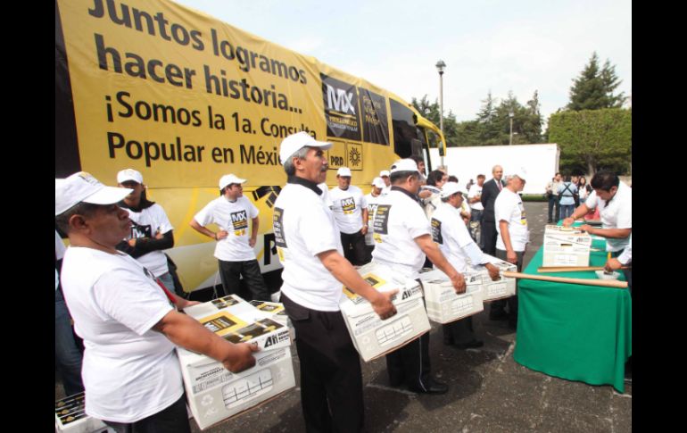 México | Son 86 cajas con los dos millones 360 mil firmas para la consultar popular El INE recibe 2.3 millones de firmas para consulta energética Son 86 cajas con los dos millones 360 mil firmas que solicitan la consultar popular en materia energética Por: SUN 3 de septiembre de 2014 - 19:07 hs Se sumarán un millón 700 mil firmas que se encuentran en el Senado por parte del PRD. SUN / CIUDAD DE MÉXICO (03/SEP/2014).- La Cámara de Diputados entregó la tarde de este miércoles al Instituto Nacional Electoral ( INE) 86 cajas con los 2 millones 360 mil firmas para solicitar la consulta popular en materia energética. El secretario de servicios parlamentarios de la Cámara, Juan Carlos Delgadillo, hizo la entrega formal de la documentación, e informó que en los próximos días se harán llegar al menos otras 4 cajas más con firmas, más las que se acumulen hasta el día 15 de septiembre, en que legalmente vence el plazo de entrega. La secretaría ejecutiva del INE recibió las cajas, emitió el acuse y éstas fueron turnadas a bodegas de la Dirección Ejecutiva del Registro Federal de Electores (RFE) ubicadas en la colonia Mixcoac, en donde estarán custodiadas. En esas instalaciones la recepción de la documentación será verificada por un notario público durante los próximos cuatro días y luego el RFE realizará la revisión de las firmas y su cotejo, como marca la ley. Atestiguaron la entrega, en la sede del INE el representante del PRD ante el INE, Camerino Eleazar Márquez Madrid y el diputado perredista y consejero de Poder Legislativo Fernando Belaunzarán. El consejero presidente de la Comisión de Organización Electoral del INE, Arturo Sánchez Gutiérrez, estuvo presente durante la llegada de los camiones con las cajas y la entrega de firmas, momento que consideró histórico por ser la primera vez en que un partido recurre al Instituto para ejercer el derecho a solicitar consulta popular, misma que no existía en el marco legal. Tanto Márquez Madrid como Belaunzarán explicaron que en total el PRD acreditará más de 4 millones de firmas. "Ya solicitamos que el millón 700 mil firmas que están en el Senado (en diciembre) sean incluidas a estos 2 millones 300 mil firmas, por eso estamos hablando de que ya juntamos 4 millones de firmas", dijo el diputado. Recordó que el artículo 5o transitorio de la Ley de Consulta Popular estableció que por única ocasión los requisitos relativos al aviso de intención y al formato para la obtención de firmas no serán aplicables a las peticiones de consultas ciudadanas que hayan sido presentadas al Congreso de la Unión con anterioridad a la entrada en vigor de la presente Ley. El diputado perredista consideró que será la Corte probablemente la que junte las propuestas de consulta energética que proponen PRD y Movimiento Regeneración Nacional (Morena). "Va a haber una consulta por tema. Llegarán a la SCJN las propuestas de consulta y en este caso llegarán dos propuestas sobre el tema del petróleo y yo esperaría que sólo saliera de ahí para evitar confusiones una sola pregunta, pero eso lo decidirá la Corte". CLAVESLo que sigue Decisión. Además del Instituto Nacional Electoral, la Suprema Corte de Justicia será la encargada de dictaminar si la consulta se puede realizar. Validarán. La Suprema Corte de Justicia de la Nación validará el apoyo ciudadano y hará declaración de trascendencia nacional. Organización. El encargado de celebrar la consulta —cualquiera que se elija— será el INE. Vinculante. Para que la consulta sea vinculante debe ser aprobada por 40% de los ciudadanos inscritos en la lista nominal de electores. Resultado. La Corte recibirá la validez de la participación para hacerla vinculatoria y notificará a las autoridades para realizar los cambios. FRASE "La consulta popular tendrá que ser el centro de las campañas de los candidatos de su partido para echar abajo estas reformas antipatrióticas y anticonstitucionales". Cuauhtémoc Cárdenas, líder moral del PRD. Temas PRD Política INE - Instituto Nacional Electoral Lee También Investigan asesinato de la elemento Stephania Carmona en instalaciones militares Puerto Vallarta amanece con nubosidad, ¿se esperan lluvias? Aquí el pronóstico Oaxaca registra actividad sísmica continua desde ayer Frente frío 8 dejará bajas temperaturas HOY domingo en estos estados Recibe las últimas noticias en tu e-mail Todo lo que necesitas saber para comenzar tu día Registrarse implica aceptar los Términos y Condiciones