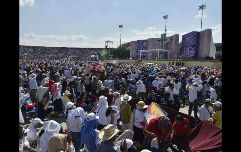 México | El Pontífice baja del helicóptero que lo trasladó y recorrió el estadio en 'papamóvil' El Papa Francisco llega a Tuxtla Gutiérrez El Pontífice baja del helicóptero que lo trasladó y recorrió el estadio en el 'papamóvil' Por: NTX 15 de febrero de 2016 - 15:09 hs TUXTLA GUTIÉRREZ, CHIAPAS (15/FEB/2016).- El helicóptero que traslada al Papa Francisco Tuxtla Gutiérrez aterrizó en la cancha de prácticas del equipo de futbol Jaguares de Chiapas, donde lo aguardaba un papamóvil que lo trasladó hacia el estadio de béisbol "Panchón Contreras". El vehículo recorrerió las instalaciones por dentro, donde hay miles de personas, que lo esperan con ánimo y entusiasmo para recibir su bendición, y luego atravesará un estacionamiento rumbo al estadio “Víctor Manuel Reyna”. Cientos de feligreses esperaban bajo el sol a que el Pontífice llegara al estadio. Temas Chiapas Papa Francisco El Papa Francisco en México Papa - Escenarios Lee También Balean a abogado frente a Ciudad Judicial en CDMX Despliegan operativo tras bloqueos en Chiapas Este será el costo del Gas Bienestar en la semana del 13 al 18 de octubre Viral: vendedor de carnitas es detenido por matar a extranjero a tubazos en la CDMX Recibe las últimas noticias en tu e-mail Todo lo que necesitas saber para comenzar tu día Registrarse implica aceptar los Términos y Condiciones