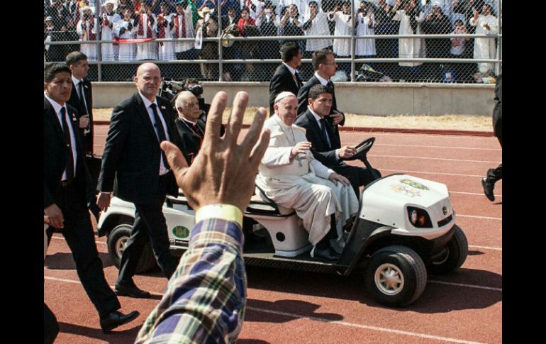 México | Tiene agendado un encuentro con 50 mil jóvenes en el inmueble deportivo de Morelia El Papa llega al estadio 'José María Morelos' El Pontífice tiene agendado un encuentro con 50 mil jóvenes en el inmueble deportivo de Morelia Por: AP 16 de febrero de 2016 - 15:18 hs MORELIA, MICHOACÁN (16/FEB/2016).- El Papa Francisco llega al estadio 'José María Morelos' donde tiene agendada una reunión con 50 mil jóvenes. Durante su recorrido de la Catedral al inmueble deportivo, al menos cinco personas saltaron las vallas de protección. Una de ellas alcanzó a tocar el vehículo descubierto pero fue detenido de inmediato por elementos de seguridad. Un niño también logró aproximarse a un menos de un metro pero fue detenido y entregó un objeto al cuerpo de seguridad papal antes de ser retirado. Otras personas arrojaron algunos objetos pero ninguno pasó cerca del Pontífice. El recorrido fue presenciado por miles de personas, algunas desde los balcones y techos de las casas. Incluso un par de personas vestidas con traje de mariachi, cabalgaron al lado del recorrido por varios minutos. Temas Iglesia Católica en Jalisco Iglesia Católica Jóvenes Papa Francisco El Papa Francisco en México Papa - Escenarios Lee También Metro CDMX: Fecha en que abrirán todas las estaciones de la Línea 1 Detienen a presunto homicida en Lomas de Oblatos Puerto Vallarta es reconocida como la mejor ciudad pequeña de Latinoamérica Suspenden clases en estos 9 municipios de Jalisco ante el paso de tormenta tropical 'Raymond' Recibe las últimas noticias en tu e-mail Todo lo que necesitas saber para comenzar tu día Registrarse implica aceptar los Términos y Condiciones