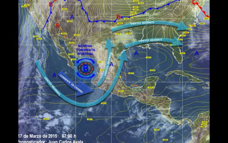 México | En las próximas horas se esperan tormentas y granizadas en Jalisco y Zacatecas El SMN prevé lluvias y ambiente frío para esta noche En las próximas horas se esperan tormentas y granizadas en Jalisco, Zacatecas, Coahuila y Chihuahua Por: NTX 17 de marzo de 2015 - 21:53 hs El SMN espera un nuevo centro de baja presión de núcleo frío que comenzará a desarrollarse sobre el noroeste de México. ESPECIAL / cna.gob.mx CIUDAD DE MÉXICO (17/MAR/2015).- Lluvias de diversa intensidad y ambiente de frío a muy frío prevalecerán esta noche en la mayor parte del país, debido a la novena tormenta invernal que se localizará sobre Chihuahua e interactuará con la entrada de humedad del Océano Pacífico. El Servicio Meteorológico Nacional (SMN) informó en su reporte más reciente que en las próximas horas se presentará ambiente de frío a muy frío con precipitaciones muy fuertes, tormentas y granizadas en Zacatecas, Jalisco, Coahuila, Chihuahua y Aguascalientes. También se pronostican precipitaciones pluviales fuertes en Sonora, Durango, Michoacán y Colima, y menores a 25 milímetros en áreas de Baja California Sur, Sinaloa, Baja California, Nayarit y Guanajuato. Hay probabilidad de caída de aguanieve en zonas montañosas con altitudes superiores a los tres mil metros de Chihuahua, Coahuila y Durango. En tanto, una zona de inestabilidad se extenderá desde el centro hasta el noreste de México y en combinación con la afluencia de humedad de los océanos Pacífico y Atlántico, provocará lluvias muy fuertes en Nuevo León y Tamaulipas. Se prevén lluvias fuertes en algunas zonas de San Luis Potosí y menores a 25 milímetros en Querétaro, Hidalgo, Veracruz, Puebla, Tlaxcala, Distrito Federal, Estado de México, Guerrero, Oaxaca, Chiapas y Tabasco. Para este miércoles, el SMN espera un nuevo centro de baja presión de núcleo frío que comenzará a desarrollarse sobre el noroeste de México y se combinará con la entrada de humedad proveniente del Océano Pacífico. Se espera que la novena tormenta invernal se desplace sobre el sur de Estados Unidos y deje de afectar a la República Mexicana en el transcurso del día. Por otra parte, una zona de inestabilidad se extenderá sobre el noreste del país y originará lluvias menores a 25 milímetros, acompañadas de actividad eléctrica y granizadas en Coahuila, Tamaulipas y el norte de Veracruz. En cuanto a las temperaturas, se pronostican valores inferiores de -5 a cero grados Celsius, con heladas y probabilidad de caída de aguanieve en las cimas montañosas de Baja California, Sonora, partes altas de Durango, Chihuahua y Coahuila. Habrá temperaturas de cero a cinco grados Celsius, con posibilidad de heladas, en zonas montañosas de Aguascalientes, Veracruz, Hidalgo, Zacatecas, Tlaxcala, Puebla, San Luis Potosí, Tamaulipas y el Estado de México. Debido a las temperaturas bajas, se recomienda vestir ropa abrigadora y prestar especial atención a niños, personas de la tercera edad y enfermos. Temas Conagua Estados Clima SMN Lluvias en el país Lee También ¿Por qué duelen las manos cuando hace frío? "Raymond" baja su potencia, pero tocará tierra en horas En Hidalgo, caminos destrozados complican rescates y ayuda Así estará Guadalajara por la tarde; ¿lloverá? Recibe las últimas noticias en tu e-mail Todo lo que necesitas saber para comenzar tu día Registrarse implica aceptar los Términos y Condiciones