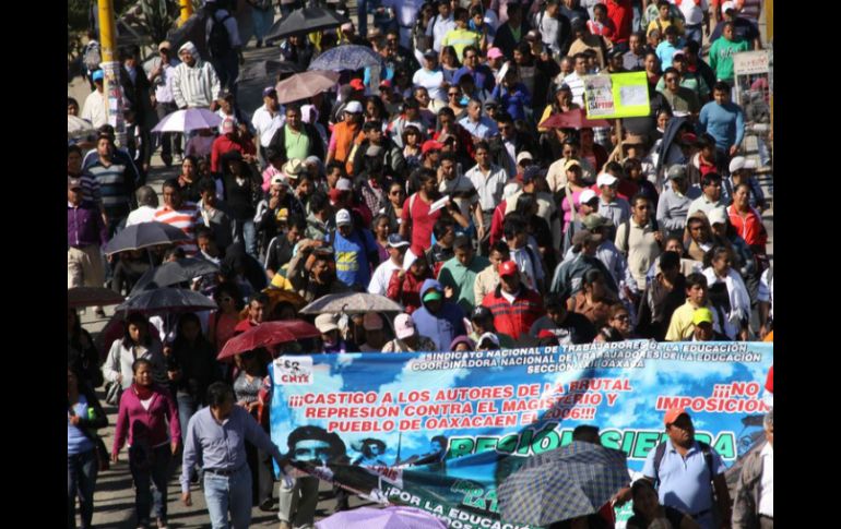 México | Buscan contrarrestar las acciones en contra de sus derechos laborales El SNTE en Oaxaca evalúa formar ''Frente de Lucha'' Buscan contrarrestar las acciones en contra de los derechos laborales de los sindicalizados Por: NTX 19 de abril de 2013 - 18:24 hs Se prevé que el Frente de Lucha se presente a la opinión pública el próximo 27 abril. ARCHIVO / OAXACA, OAXACA (19/ABR/2013).- La Sección 22 del Sindicato Nacional de Trabajadores de la Educación (SNTE) evalúa la conformación de un frente de organizaciones, para contrarrestar las acciones en contra de los derechos laborales de los sindicalizados. De acuerdo a la convocatoria de la gremial, la reunión iniciada esta mañana, convocó a organizaciones sociales, colectivos, estudiantes, colonias, pueblos indígenas y representantes de agencias y municipios del estado. Ello, con el objetivo de conformar un megafrente de organizaciones denominado Frente Único de Lucha, que se contraponga a las reformas educativa y laboral que se realizan en distintos órdenes de gobierno. Lo anterior, derivado del desencanto que prevalece entre organizaciones sociales y ciudadanos por los líderes sociales que se desprendieron de la Asamblea Popular de los Pueblos de Oaxaca (APPO), pero que no han dado resultados, afirmaron algunos participantes. Encabezados por su líder sindical, los maestros oaxaqueños se reúnen en uno de los edificios de ese sindicato localizado en el municipio de Santa Lucía del Camino, conurbado al sur con la capital oaxaqueña, donde pretenden llegar a los acuerdos iniciales de dicho frente. Según lo previsto por el magisterio oaxaqueño, será el próximo 27 de abril cuando este frente sea presentado a la opinión pública. Temas SNTE Estados Oaxaca Conflicto Magisterial Recibe las últimas noticias en tu e-mail Todo lo que necesitas saber para comenzar tu día Registrarse implica aceptar los Términos y Condiciones