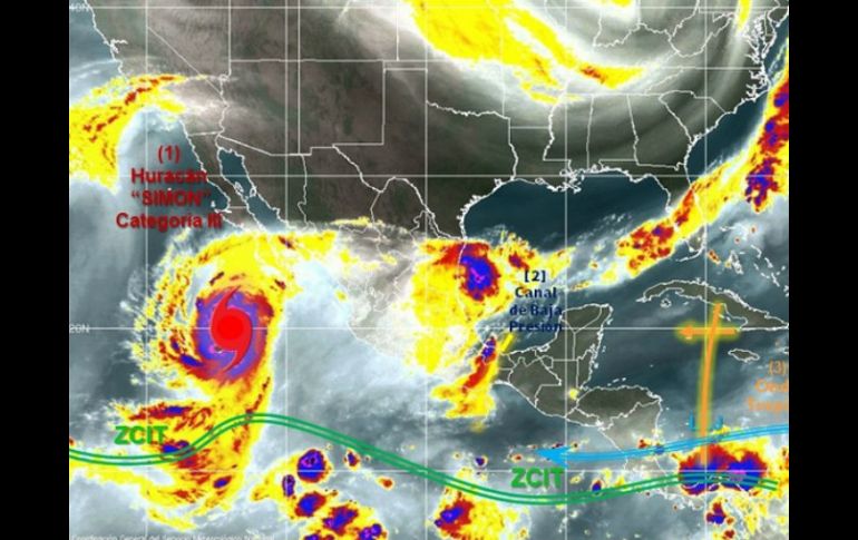 México | La Conagua confirma la intensidad del fenómeno a partir de las 13:00 horas El huracán 'Simón' llega a la categoría III El meteoro se encuentra a 565 km al oeste-suroeste de Cabo San Lucas, Baja California Sur Por: SUN 4 de octubre de 2014 - 13:01 hs CIUDAD DE MÉXICO (04/OCT/2014).- La Comisión Nacional del Agua ( Conagua) informó que el huracán "Simón" llegó a categoría tres a las 13:00 horas. El meteoro se encuentra a 565 km al oeste-suroeste de Cabo San Lucas, Baja California Sur. En su Sistema de Alerta Temprana, el Sistema Nacional de Protección Civil (Sinaproc), detalló que se encuentran en alerta naranja las islas Clarión, San Benedicto y Socorro; y la verde en Baja California Sur, noreste de Sinaloa, así como las islas Marías y Marietas. Mientras que el sur de Baja California, y el occidente y sur de Michoacán se encuentra activa la alerta azul, de peligro mínimo. De acuerdo con el pronóstico, se espera que este sistema continúe su desplazamiento al oeste-noroeste y al inicio de esta noche se localice a 590 kilómetros al oeste de Cabo San Lucas. A su paso, ''Simón'' ocasionará lluvias intensas en Jalisco y Nayarit; muy fuertes en localidades de Baja California Sur, Sinaloa y Durango; fuertes en Sonora y Michoacán, y lluvias menores a 25 mm en Baja California y Colima, así como oleaje elevado en el sur de Baja California Sur, Sinaloa, Nayarit y el Archipiélago de Revillagigedo. El organismo de la Secretaría de Gobernación recomendó restringir la navegación marítima en los alrededores del Archipiélago de Revillagigedo. Asimismo, sugirió a la población y navegación marítima mantenerse informada de las condiciones climáticas y seguir las indicaciones del personal de Protección Civil, capitanías de puerto y de la Secretaría de Marina-Armada de México. Con información de SUN y NTX. Temas Conagua Huracanes Temporada de lluvias SMN Lluvias en el país Lee También Viernes de tormentas en Guadalajara; aparecerán a esta hora LLUVIA en GDL por la noche, pronóstico del clima para hoy, 9 de octubre Tormenta tropical "Raymond" mantiene en alerta a estos estados el fin de semana ALERTA en Jalisco por formación de ciclón "Raymond" Recibe las últimas noticias en tu e-mail Todo lo que necesitas saber para comenzar tu día Registrarse implica aceptar los Términos y Condiciones