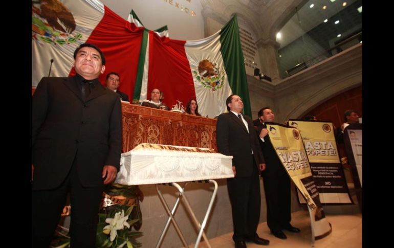 México | El modelo estaba agotado, señalan Eliminan la candidatura común en Edomex La iniciativa promovida por el legislador ecologista Adrián Fuentes es blanco de fuertes críticas por considerar que atenta contra la democracia Por: SUN 15 de septiembre de 2010 - 01:35 hs Con flores y mariachis, diputados del PAN y PRD repudiaron la eliminación de la candidatura común. EL UNIVERSAL / TOLUCA, ESTADO DE MÉXICO (15/SEP/2010).- Tras casi cinco horas de discusión en el salón del pleno del Congreso del Estado de México, con 52 votos a favor de diputados del PRI, PVEM, Nueva Alianza, PSD y Convergencia, y 21 en contra del PAN, PRD y PT, fue aprobada a la iniciativa de ley que elimina de la Constitución y Código Electoral estatales, la figura de candidatura común, con lo que se anula la posibilidad de que panistas y perredistas postulen a un solo candidato que compita por la gubernatura bajo dicha figura. El argumento, en voz del legislador Horacio Jiménez, que la bancada del Partido Convergencia empleó para votar a favor de la iniciativa presentada por el diputado del Partido Verde Ecologista de México (PVEM), Adrián Fuentes, el 8 de septiembre fue que la figura de candidatura común ya estaba agotada. “Sentimos que llegó a su vida útil la figura de la candidatura común”, dijo Jiménez momentos antes de sumar su voto al de sus dos compañeros de Convergencia, 39 diputados del PRI, seis de Nueva Alianza, tres del PVEM y uno del Social Demócrata (PSD). Mientras, el legislador panista Gustavo Parra Noriega, al tomar la palabra en la tribuna minutos antes de la votación, sostuvo que panistas y perredistas tienen la idea de sumar esfuerzos y anteponer sus intereses como institutos políticos para poder quitar el sistema caduco que encabeza el gobernador Enrique Peña Nieto del PRI. “Eso es lo que queremos, por supuesto, y se lo tenemos que explicar a la ciudadanía y lo vamos a hacer y precisamente la ciudadanía optará. Ustedes —priistas— piensan que los ciudadanos son tontos o que todavía son rehén del clientelismo político ¿Eso es lo que piensan? Nosotros —panistas y perredistas— sí creemos en la ciudadanía y en su capacidad de definir y elegir”, dijo. Minutos después de la votación, los legisladores del PAN, PRD y PT sacaron el féretro que habían puesto al interior del salón de sesiones del pleno del Congreso local y lo colocaron frente a las oficinas del gobernador Peña Nieto, a quien señalaron como el autor intelectual de la iniciativa que dio muerte a la democracia en la Entidad. “El gobernador Enrique Peña Nieto mató a la democracia, ahora le toca a él, enterrarla”, dijo Ricardo Moreno Bastida, coordinador de los ocho diputados del PRD, frente a Palacio de Gobierno, donde quedó el ataúd. Las frases“Es una muestra del abuso típico del PRI. Eso evidencia el tamaño de su miedo a perder la elección ”Marcelo Ebrard Casaubón, jefe de Gobierno del Distrito Federal. “Haremos todo lo que esté a nuestro alcance para que los derechos humanos de los mexiquenses prevalezcan en plenitud ”Hortensia Aragón, secretaria general del PRD.“La aprobación de la reforma se da porque Enrique Peña Nieto está aterrado con la idea de enfrentar una alianza ”Maximiliano Cortázar, vocero del PAN. Temas Estados Estado de México Partidos políticos Lee También César Montes intenta justificar la goleada ante Colombia 'Chicharito' marca su primer gol al América en partido amistoso Colombia exhibe a México con goleada en Arlington México vs Colombia • Momentos destacados • Partido amistoso Recibe las últimas noticias en tu e-mail Todo lo que necesitas saber para comenzar tu día Registrarse implica aceptar los Términos y Condiciones
