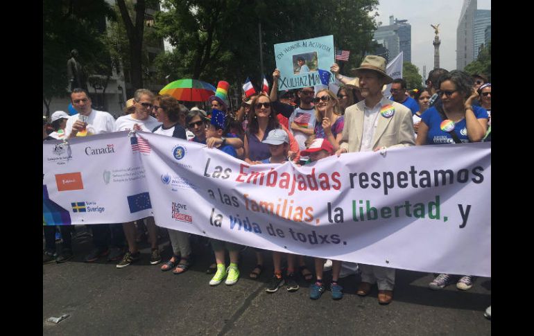 CIUDAD DE MÉXICO (24/JUN/2017).- Embajadores acreditados en México se unieron a la XXXIX marcha del XXXIX Marcha del Orgullo LGBTTTI en la Ciudad de México.La embajadora de Estados Unidos en México, Roberta Jacobson, acompañada de sus homólogos de Canadá, Pierre Aladin, y de Reino Unido, Duncan Taylor, comenzaron ya avanzar sobre Paseo de la Reforma.Los diplomáticos se congregaron al lado de la embajada de Estados Unidos.Ataviados con playeras alusivas al orgullo LGBTTTI, los diplomáticos manifestaron su satisfacción por la convocatoria."Es un acto muy maravilloso que refleja la diversidad", declaró la embajadora Roberta Jacobson.