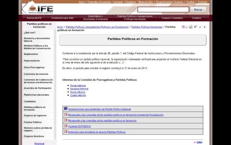 De acuerdo con el informe, 52 organizaciones notificaron su intención de constituirse como tal, de esa cifra, 10 fueron improcedentes y 10 presentaron escrito de desistimiento, por lo que 32 continúan en el procedimiento.El reporte sobre el estado que guarda el procedimiento para la constitución de nuevos partidos políticos nacionales, especificó que 14 de las 32 organizaciones presentaron su programa de asambleas, de las cuales 10 optaron por realizar asambleas estatales y cuatro celebrar distritales.Destacó que hasta hoy, sólo seis organizaciones registran asambleas celebradas y la norma establece que uno de los requisitos para obtener el registro de partido político es tener 20 estatales o 200 distritales, con la acreditación de tres mil o 300 afiliados, respectivamente, de acuerdo al esquema que eligieron.Las organizaciones que celebraron asambleas estatales o distritales, son: Movimiento Regeneración Nacional (Morena), Erigiendo una Nueva República, Organización Política del Pueblo y los Trabajadores, Encuentro Social, Frente Humanista, y Organización de Ciudadanos Socialistas de México.En ese sentido, detalló que hasta la fecha, sólo Morena llevó a cabo el número de asambleas que exige la normatividad, al celebrar 24 estatales.El consejero electoral Lorenzo Córdova Vianello, presidente de la Comisión de Prerrogativas y Partidos Políticos, explicó que la validación de las asambleas realizadas y del registro de afiliaciones será a partir del 31 de enero de 2014.Indicó que en esa fecha será también cuando inicie la etapa revisora del proceso para la constitución de nuevos partidos, en la cual el IFE realizará la verificación del cumplimiento de los requisitos legales establecidos en los artículos 28, 29 y 30 del Código Federal de Instituciones y Procedimientos Electorales (Cofipe).Por ello, señaló, los actos realizados hasta la fecha de ninguna manera pueden ser considerados como válidos, ni mucho menos puede hablarse de suficiencia respecto al cumplimiento de los requisitos para constituirse como partido político.Los requisitos que tienen que cumplir las organizaciones para obtener su registro como partidos políticos son, además de la realización de asambleas, la acreditación de por lo menos 219 mil 608 afiliados, que equivale a 0.26 por ciento del padrón electoral utilizado en la última elección federal.Además, tienen que presentar informes mensuales del origen y destino de los recursos que obtengan para el desarrollo de sus actividades tendientes a la obtención del registro legal, y celebrar una asamblea nacional constitutiva.Hasta el 8 de diciembre pasado, las organizaciones que registraron afiliados ante el IFE durante la celebración de asambleas son: Morena, con 106 mil 606; Erigiendo una Nueva República, con seis mil 414; Organización Política del Pueblo y los Trabajadores, con tres mil 289.Asimismo, Encuentro Social, con 63 mil 233, Frente Humanista, 41 mil 104, y la Organización de Ciudadanos Socialistas de México con tres mil 811.A fin de seguir y conocer con detalle la información sobre el proceso de registro de nuevos partidos, el IFE dispuso un micrositio en su página web http://www.ife.org.mx/portal/site/ifev2/Partidos_politicos_en_formacion/.En esa dirección electrónica, añadió, podrán conocerse las etapas y los requisitos del proceso de registro, así como el avance de cada organización que aspira a convertirse en partido político.