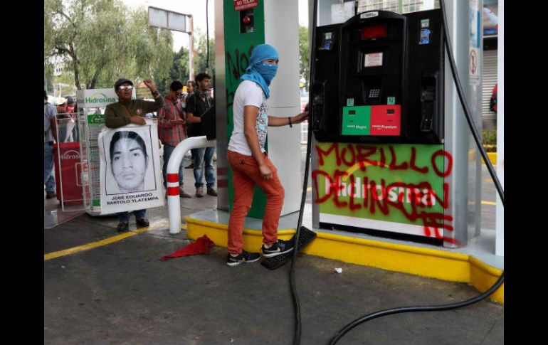 CIUDAD DE MÉXICO (11/MAR/2017).- Alrededor de 70 familiares y normalistas de Ayotzinapa protagonizaron este mediodía destrozos en la gasolinera ubicada en la esquina de la avenida Insurgentes y Paseo de la Reforma, en el centro de la Ciudad de México en protesta por la falta de resultados en las investigaciones de la desaparición en septiembre de 2014 de 43 estudiantes de la Escuela Normal Rural “Raúl Isidro Burgos” de Ayotzinapa, Guerrero.Los manifestantes, quienes se taparon el rostro, regalaron aditivos, aceites y permitieron a automovilistas tomar gasolina sin pagar.Durante media hora, los manifestantes realizaron pintas en la gasolinera exigiendo la presentación de sus compañeros, así como y manifestaron que ese fue un acto por la poca respuesta que ha tenido el caso de los jóvenes desaparecidos.Al terminar de vandalizar la gasolinera, encapuchados y familiares de los estudiantes desaparecidos de Ayotzinapa se dirigieron al Centro Prodh ubicado en la calle Serapio Rendón.La gasolinera permanece cerrada debido a que empleados realizan un recuento de los destrozos ocurridos.Una docena de policías de tránsito de la Ciudad de México permanecen en las inmediaciones del establecimiento.