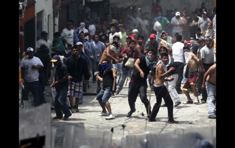 México | Pobladores de San Bartolo Ameyalco se enfrentan a granaderos por una obra en la zona Enfrentamiento en poblado del DF deja 140 heridos Pobladores de San Bartolo Ameyalco se enfrentan a granaderos por una obra de agua potable en la zona Por: SUN 21 de mayo de 2014 - 19:48 hs CIUDAD DE MÉXICO (21/MAY/2014).- Al menos 96 pobladores de San Bartolo Ameyalco, delegación Álvaro Obregón, y 44 policías granaderos resultaron heridos luego del enfrentamiento con granaderos de la Secretaría de Seguridad Pública capitalina. Del los pobladores, 56 fueron atendidos en el centro de salud "Doctor Ignacio Morones" ubicado en el centro del pueblo, según informaron habitantes que estaban al tanto de la atención que recibían los vecinos. Al parecer otros 40 fueron atendidos en una clínica privada que se encuentra a unas calles del centro del pueblo. Retienen a policías Luego del enfrentamiento, pobladores retuvieron a policías, a quienes liberaron horas después. Dos de ellos fueron liberados luego del enfrentamiento. Luego de esto, cuatro policías más, que se encontraban retenidos en el centro de salud del pueblo fueron liberados por los pobladores de la zona. Fuentes del gobierno del Distrito Federal informaron que los policías salieron del Centro de Salud a bordo de una ambulancia y serán atendidos debido a que sufrieron diversos golpes y lesiones. Las fuentes del gobierno capitalino informaron que los últimos cuatro formaban parte de un grupo que había acudido al centro de salud a liberar a los dos primeros que ya estaban retenidos y en el intento a estos cuatro ya no los dejaron salir. Pobladores se oponen a obra de agua potable El enfrentamiento se desató ya que los pobladores se oponen al proyecto de agua potable en San Bartolo, donde planean introducir un tubo de una red primaria de agua potable sobre la calla Camino a Mixcoac. Hasta el momento, la zona del enfrentamiento se encuentra en relativa calma. A lo largo de la calle Francisco I. Madero se observan piedras y botellas regadas y algunos vidrios rotos de diversas casas. El director general de gobierno de la delegación, Joaquín Meléndez, dijo que la instalación de esta tubería principal se realizará en lo que resta del día y probablemente el jueves. Se prevé que los elementos de la Secretaría de Seguridad Pública se mantengan en el punto hasta que concluyan las labores. Temas Estados Ciudad de México Manifestaciones en la Cd. de México Lee También "Raymond" baja su potencia, pero tocará tierra en horas En Hidalgo, caminos destrozados complican rescates y ayuda México vs Argentina: ¿Quién ganará el partido según la IA? Así se celebrará en Guanajuato el Día de Muertos Recibe las últimas noticias en tu e-mail Todo lo que necesitas saber para comenzar tu día Registrarse implica aceptar los Términos y Condiciones