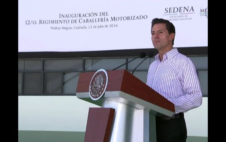 México | Asegura que para esto cuenta con el respaldo institucional de sus fuerzas armadas Estado no dará un paso atrás para dar seguridad a familias: Peña Nieto El Mandatario asegura que para esto cuenta con el respaldo institucional de sus fuerzas armadas Por: SUN 12 de julio de 2016 - 15:52 hs Peña Nieto asistió a la Inauguración del 12 Regimiento de Caballería Motorizado y Unidad Militar en Piedras Negras. TWITTER / @PresidenciaMX PIEDRAS NEGRAS, COAHUILA (12/JUL/2016).- El Presidente Enrique Peña Nieto aseveró que el Estado mexicano no dará un paso atrás en el objetivo prioritario de dar seguridad y tranquilidad a las familias mexicanas y para ello se cuenta con el valioso activo de las fuerzas armadas. Al encabezar la Inauguración del 12 Regimiento de Caballería Motorizado y Unidad Militar, en Piedras Negras, Coahuila, el mandatario indicó que si bien aún quedan importantes retos que superar, en algunas zonas específicas, para ello México cuenta con el respaldo institucional de sus fuerzas armadas. Dijo que justamente para lograr que el Ejército tenga mayor capacidad de despliegue institucional, se han construido nueve cuarteles y en Coahuila ya son dos. Temas Gobierno de México Ejército Enrique Peña Nieto Lee También Zague aseguró que "no existe calidad" en el futbol mexicano Suman 48 muertos y miles de damnificados por lluvias en cinco estados ¿Qué alimentos SÍ pueden comer las ardillas y cuáles NO? Clima en Ciudad de México hoy: el pronóstico para el domingo 12 de octubre de 2025 Recibe las últimas noticias en tu e-mail Todo lo que necesitas saber para comenzar tu día Registrarse implica aceptar los Términos y Condiciones