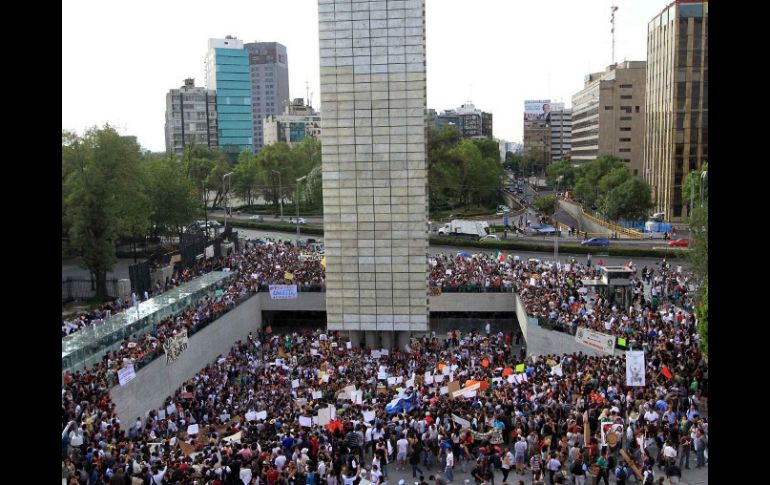 México | Consideran que existe un sesgo de la cobertura del proceso electoral Estudiantes se manifiestan en la ''Estela de Luz'' del DF Los manifestantes consideran que existe un sesgo de la cobertura informativa del proceso electoral Por: SUN 23 de mayo de 2012 - 17:55 hs CIUDAD DE MÉXICO (23/MAY/2012).- Cientos de estudiantes de las universidades Nacional Autónoma de México (UNAM), Autónoma Metropolitana (UAM), Iberoamericana (Uia), Anáhuac, Del Claustro de Sor Juana, Tecnológico de Monterrey, Instituto Politécnico Nacional (IPN), entre otras instituciones, se concentraron la tarde de este miércoles de manera pacífica en las inmediaciones del monumento ''Estela de Luz'' en Paseo de la Reforma como parte de las protestas en contra de lo que consideran un sesgo de la cobertura informativa del proceso electoral. Con mantas y pancartas en las que se leen ''Yo soy el 132'', ''La técnica al servicio de la patria, no a los candidatos a la Presidencia'', así como diversas arengas, los universitarios realizaban la manifestación en completo orden. Hasta las escalinatas de esta torre llegó Javier Sicilia, líder del Movimiento por la Paz con Justicia y Dignidad, quien expresó su beneplácito ante la reacción de los jóvenes. ''Se siente mucha vitalidad, porque ellos son la esperanza de la nación, pues no sólo son protestas sino más bien, están dando una lección de dignidad para el pueblo de México'', enfatizó. El activista reconoció que esta manifestación no sólo es de protesta, sino de propuestas concretas como una reforma a los medios de comunicación, por lo que pidió escuchar a los jóvenes de México. Temas Estudiantes Manifestaciones en México Elecciones México 2012 Javier Sicilia Lee También Clima en Ciudad de México hoy: el pronóstico para el sábado 11 de octubre de 2025 Hoy No Circula Sabatino: Autos que descansan este 11 de octubre en CDMX y Edomex CURP biométrica : ¿Dónde sacar cita para el trámite en CDMX? Detienen a Lex Ashton 'N' por homicidio y tentativa de homicidio Recibe las últimas noticias en tu e-mail Todo lo que necesitas saber para comenzar tu día Registrarse implica aceptar los Términos y Condiciones
