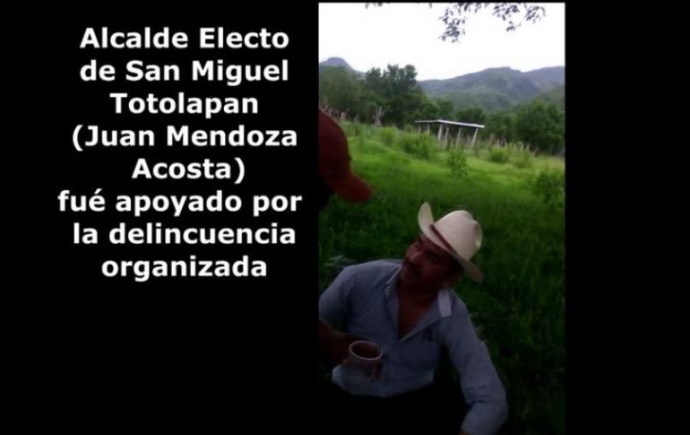 México | El futuro alcalde de San Miguel Totolapan aparece en con presuntos delincuentes Exhiben a edil electo en Guerrero en pacto con criminales El futuro alcalde de San Miguel Totolapan aparece en un video con presuntos delincuentes de la zona Por: SUN 3 de agosto de 2015 - 16:11 hs CHILPANCINGO, GUERRERO (03/AGO/2015).- El perredista Juan Mendoza Acosta, edil electo de San Miguel Totolapan, municipio de la región de Tierra Caliente, apareció en un video donde presuntamente realiza pactos con supuestos integrantes de un grupo de la delincuencia organizada que opera en la zona. En la grabación, subida a YouTube por el usuario "El Justo llego" y con una duración de casi cinco minutos, se ve al alcalde electo brindando con los sujetos, algunos armados, a quienes les dice: “¡Jamás les voy a fallar cabr…!”. En la descripción del video se lee: “Juan Mendoza Acosta en reunión con el encargado de plaza 'El Tequilero', agradeciendo por su apoyo del 7 de junio y haciendo acuerdos para operar” (sic). Mendoza, quien milita en Nueva Mayoría -corriente al interior del PRD a la que está adherida la ex candidata a la gubernatura de Guerrero, Beatriz Mojica Morga-, fue privado de su libertad por unas horas junto con dos miembros de su equipo de campaña, el pasado 5 de mayo. La dirigencia nacional del sol azteca dio a conocer el suceso en redes sociales. En el video aparece en un lugar al aire libre, sentado en el pasto; por unos segundos está en medio de dos presuntos narcotraficantes de un cartel cuyo nombre no se menciona en la grabación. Juan Mendoza porta un sombrero beige que luego intercambia por una gorra roja con uno de ellos, de playera blanca, que porta un arma de grueso calibre, al parecer AK-47, y le dice: “Tú crees que soy pen...”, en respuesta a la advertencia que le ha hecho: “Aquí somos de una sola línea”. Hay fragmentos del video que son inaudibles, pero los presuntos delincuentes mencionan frases como: “Así como te hicimos ganar, échanos la mano”, y el alcalde electo contesta: “Jamás te voy a fallar 'cocho', jamás les voy a fallar”. En el lugar se observan vasos con lo que parece una bebida alcohólica y los tres hombres se escuchan alcoholizados. En otra parte de la grabación, el sujeto que porta el arma de grueso calibre, que está parado escuchando a Juan Mendoza y a otro hombre de playera rosa, le dice al perredista: “Te voy a matar hijo de tu pin... madre” y el edil electo responde: “¡No me hables así, te estimo a lo ver...!”. El audio se desfasa de las imágenes y en momentos no se distingue de quién vienen los diálogos. Sin embargo, en la parte final del video, una voz dice a Juan Mendoza: “Juntos vamos a ser invencibles”, “¿Vas a jalar con nosotros?”, “Tú sabes que estás con nosotros viejo, ¿sí o no?”, a lo que el edil contesta: “¡Tenemos!”, luego asegura: “Jamás voy a jalar con otros cochos”. SABER MÁS San Miguel Totolapan es un municipio de la Tierra Caliente que colinda con Michoacán. En ese lugar han ocurrido desplazamientos de personas expulsadas por grupos de la delincuencia organizada. La Procuraduría General de la República ha admitido la presencia de grupos como La Familia Michoacana, el cártel Nueva Generación y Los Caballeros Templarios. Es uno de los municipios considerados por la Secretaría de Seguridad Pública como de los más peligrosos de Guerrero. Temas PRD Estados Guerrero Escándalos en redes sociales Lee También Estos son los estados en alerta por posible propagación de dengue Despliegan operativo tras bloqueos en Chiapas Así se prevé que avance el desarrollo de "Sonia" en México WhatsApp prepara uno de los mayores cambios en su historia reciente Recibe las últimas noticias en tu e-mail Todo lo que necesitas saber para comenzar tu día Registrarse implica aceptar los Términos y Condiciones