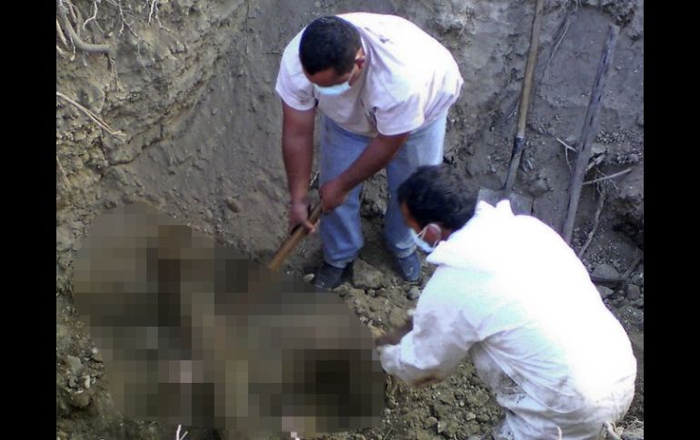 México | Autoridades continuarán trabajos de excavación en busca de más víctimas Exhuman en NL tres cuerpos de fosa clandestina En una brecha de Escobedo, un vecino avistó que una extremidad inferior de una de las víctimas sobresalía de la superficie, por lo que dio aviso a las autoridades Por: NTX 17 de abril de 2011 - 09:15 hs Aspecto de la exhumación de cuerpos de fosa clandestina en Tamaulipas; este sábado se localizó una en Nuevo Léon. AFP / MONTERREY, NUEVO LEÓN (17/ABR/2011).- Los cuerpos de tres hombres fueron encontrados en un fosa clandestina del municipio de Escobedo, donde autoridades estatales investigan si en el sitio, ubicado en las faldas del cerro del Topo Chico, se localizan más cadáveres. El hallazgo fue reportado anoche por un vecino de la colonia Santa Lucía sobre la brecha 'Privada Cañón', donde la extremidad inferior de una de las víctimas sobresalía de la superficie, por lo que dio parte a la policía municipal. Con el apoyo de personal de Servicios Periciales de la Procuraduría General de Justicia del Estado (PGJE), se excavó con picos y palas el sitio, donde localizaron dos cadáveres a una distancia de medio metro, mientras que la tercera víctima estaba a cinco metros de los primeros. Las labores concluyeron hasta las primeras horas de este domingo y, de acuerdo a los peritos, los tres occisos estaban maniatados, se les apreciaban huellas de tortura y el llamado 'tiro de gracia', por lo que se presume fueron asesinados recientemente. Por la falta de iluminación suficiente se suspendieron las excavaciones, pero se espera que en el transcurso del día se reanuden, a fin de localizar más víctimas o en su caso descartar esta posibilidad. Temas Estados Nuevo León Fosa clandestina Recibe las últimas noticias en tu e-mail Todo lo que necesitas saber para comenzar tu día Registrarse implica aceptar los Términos y Condiciones