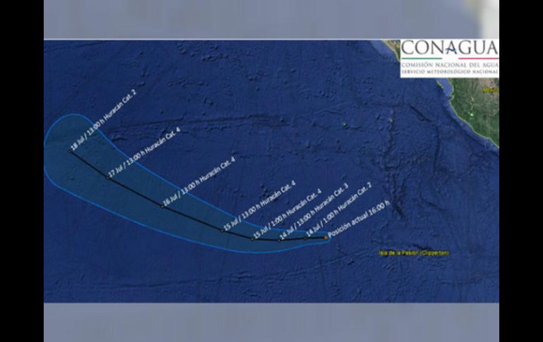 CIUDAD DE MÉXICO (13/JUL/2017).- La tormenta 'Fernanda' tomó fuerza rápidamente hasta convertirse el jueves en huracán en las costas del Pacífico mexicano, si bien los meteorólogos afirmaron que por ahora no representa una amenaza dado que se aleja de tierra.El Centro Nacional de Huracanes de Estados Unidos señaló que es muy probable que 'Fernanda' sea un potente huracán para el viernes.La tormenta era un huracán categoría uno con vientos máximos sostenidos de 130 kph (80 mph) para mediados de la tarde del jueves. Su vórtice se localizaba aproximadamente a mil 450 kilómetros (900 millas) al sur-suroeste del extremo de la Península de Baja California mexicana y se trasladaba al oeste a 19 kph (12 mph).