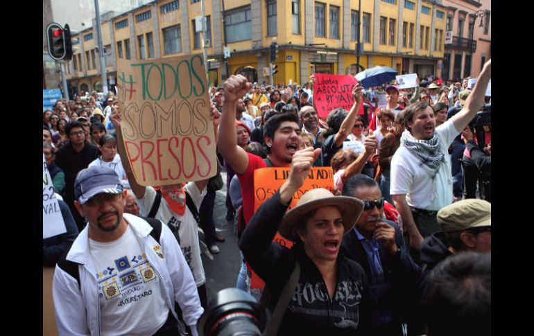 México | La fianza es para que enfrenten el juicio fuera de la cárcel Fijan fianza de 40 mil pesos a detenidos por disturbios en DF Sólo en el caso de Bryan Reyes la fianza se incrementó a aproximadamente 100 mil pesos, se le imputan otros delitos Por: NTX 27 de diciembre de 2012 - 13:38 hs Familiares y amigos de los detenidos protestan ante la ADLF. NTX / CIUDAD DE MÉXICO (27/DIC/2012).- La jueza 47 Penal del Distrito Federal, Patricia Mora Brito, fijó una fianza de 40 mil pesos a cada uno de los 14 detenidos por los disturbios del 1 de diciembre, para que enfrenten sus juicios en libertad. El abogado Armando Barrera informó que sólo en el caso de Bryan Reyes Rodríguez la fianza se incrementó a aproximadamente 100 mil pesos, debido a que también se le imputan otros delitos. Por ello en el trascurso de esta tarde los abogados se reunirán con los familiares de los detenidos para pagar dichos montos a través de una afianzadora, a la cual se le deberán exhibir cinco mil pesos aproximadamente. Rita Emilia Neri Moctezuma, la única mujer detenida y quien se encuentra en el penal femenil de Santa Martha Acatitla, será trasladada en las próximas horas al juzgado 47 Penal donde se le decretará su libertad. Los otros detenidos son: Obed Palagod Echeverría, Sandino Alejandro Jaramillo Rojas, Roberto Fabián Duarte García, Jorge Dionisio Barrera Jiménez, César Llaguno Romero, Osvaldo Rigel Barrueta Herrera. Además de Daniel García Vázquez, Eduardo Daniel Columna Muñoz, Alejandro Lugo Morán, Enrique Rosales Rojas, Miguel Ángel Granados Rojas y Stylianos García Vackmes. Se prevé que los detenidos obtengan su libertad durante la madrugada del viernes, una vez que se cumplan todos los requisitos para llevar su juicio en libertad. Esto luego de que este jueves fuera publicado en la Gaceta Oficial del Distrito Federal el decreto que reforma el Artículo 362 del Código Penal, por el cual se reducen los años de prisión para quienes ataquen la paz pública. El Artículo 362 indica que se impondrán de dos a siete años de prisión y la suspensión de los derechos políticos hasta por 10 años a quienes perturben la paz pública con actos violentos contra personas, bienes públicos o privados o servicios públicos. Temas Estados Manifestaciones en la Cd. de México Detenidos en México Toma de protesta Recibe las últimas noticias en tu e-mail Todo lo que necesitas saber para comenzar tu día Registrarse implica aceptar los Términos y Condiciones