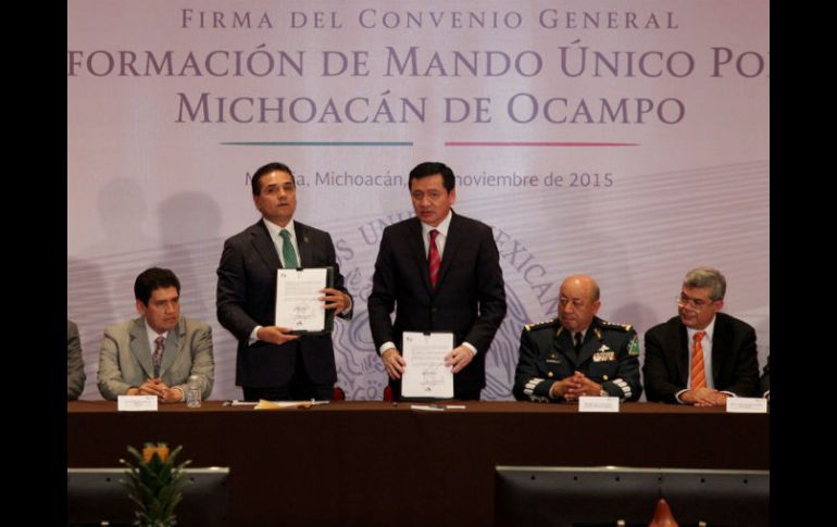 México | Silvano Aureoles agradece la disposición de los alcaldes para signar el acuerdo Firman convenio de Mando Único en Michoacán Silvano Aureoles agradece la disposición de los alcaldes para signar el acuerdo Por: SUN 9 de noviembre de 2015 - 16:49 hs El gobernador de la entidad indica que es indispensable la participación social en materia de seguridad. SUN / R. Tinoco CIUDAD DE MÉXICO (09/NOV/2015).- Con la presencia del secretario de Gobernación, Miguel Ángel Osorio Chong, el gobernador Silvano Aureoles Conejo signó el convenio del Mando Único Policial para Michoacán. Durante el evento, el mandatario michoacano agradeció la disposición de los alcaldes para signar dicho convenio. Indicó que la seguridad pública es el reclamo principal de la sociedad, y que responder a él es una responsabilidad conjunta. “Debemos reconocer que los problemas que existen en la materia derivan de la falta de coordinación y unidad de mando”, indicó. Aureoles también dijo que es indispensable la participación social; "juntos vamos a lograr regresar la tranquilidad". Temas Michoacán Estados Mando Único Policial Silvano Aureoles Lee También Lluvia y frío para estas zonas de México HOY viernes Aún lejos de Jalisco, "Sonia" baja potencia para aparecer El “malabarista” de la Casa Blanca Pueblos Mágicos con tradiciones del Día de Muertos más cerca de Jalisco Recibe las últimas noticias en tu e-mail Todo lo que necesitas saber para comenzar tu día Registrarse implica aceptar los Términos y Condiciones