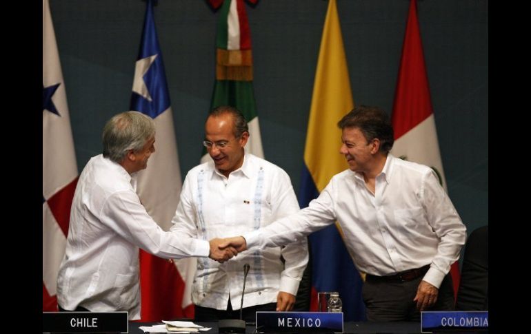 México | Colombia, Chile, México y Perú acuerdan avanzar en pendientes para concretar tratado Formalizarán Alianza del Pacífico en seis meses Colombia, Chile, México y Perú acuerdan avanzar en pendientes para concretar tratado Por: EFE 4 de diciembre de 2011 - 20:48 hs MÉRIDA, YUCATÁN (04/DIC/2011).- Colombia, Chile, México y Perú acordaron hoy "avanzar con paso firme" en las tareas que tienen pendientes para suscribir en seis meses, en Santiago de Chile, el tratado que formalizará la Alianza del Pacífico. Al clausurar la II Cumbre de la Alianza del Pacífico, el Presidente de México, Felipe Calderón, consideró "crucial" e "inédito" el esfuerzo de integración de estas cuatro naciones para el futuro de América Latina. "Debemos avanzar a una integración más profunda en la región con iniciativas audaces como la Alianza del Pacífico", que es "el primer paso para integrar un bloque unido, fuerte, dinámico que nos permita conquistar nuevos mercados", fortalecer empresas, atraer inversiones y detonar el potencial de crecimiento, señaló. "Nuestro deseo es que más naciones hermanas de América Latina se sumen a este esfuerzo histórico", manifestó Calderón, tras destacar que esta "puede y debe ser la década de América Latina" e incluso del siglo, como dijo el presidente chileno, Sebastián Piñera. Además de Calderón y Piñera, participaron en la cumbre los mandatarios de Colombia, Juan Manuel Santos, y Panamá, Ricardo Martinelli, quien asiste como observador, el canciller de Perú, Rafael Roncagliolo, así como el titular del Banco Interamericano de Desarrollo, el colombiano Luis Alberto Moreno. "Hago votos por que pronto Panamá y muchos otros países que tenemos el privilegio de ser bañados por el Pacífico" puedan incorporarse a "este esfuerzo común de singulares potencialidades", añadió el anfitrión. Según Calderón, este esfuerzo inédito de integración "es clave en un entorno económico mundial muy complejo, cuyo origen se encuentra en los graves problemas que enfrentan mucho países desarrollados". Muchas naciones europeas están teniendo que tomar medidas my difíciles para corregir sus desequilibrios fiscales y probablemente la recuperación de sus economías tomará varios años, comentó. En contraste, dijo, las naciones de América Latina y de la Cuenca del Pacífico están "vigorosamente impulsadas por economías fuertes estables y con enorme potencial de crecimiento". La Alianza del Pacífico, dijo, es un "mecanismo innovador que nos permitirá ir más allá de la suma de tratados comerciales bilaterales", pues busca consolidar una zona de "integración profunda a fin de facilitar los intercambios de bienes y servicios, incrementar los flujos de inversión e intensificar la colaboración". "Nos permitirá detonar las fortalezas de nuestras economías para alcanzar su pleno desarrollo y crecer juntos mas rápido de lo que lo haríamos individualmente", señaló el gobernante mexicano, quien exhortó a los grupos de trabajo a avanzar con paso firme para suscribir en junio el acuerdo marco para formalizar la Alianza. Los gobernantes firmaron la "Declaración de Mérida" en la clausura la cumbre, celebrada en el Centro de Convenciones Siglo XXI de Mérida, mientras que los dirigentes empresariales firmaron un convenio de colaboración, al igual que los titulares de las bolsas de valores de los cuatro países. Temas Gobierno de México Felipe Calderón Relaciones Exteriores Alianza del Pacífico Recibe las últimas noticias en tu e-mail Todo lo que necesitas saber para comenzar tu día Registrarse implica aceptar los Términos y Condiciones