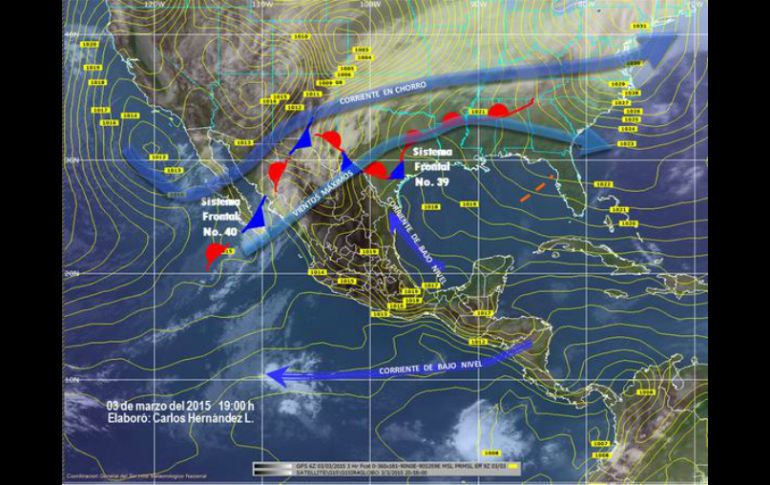 México | Prevén precipitaciones en Sonora, Chihuahua, Sinaloa, Durango y Baja California Sur Frente frío 40 generará bajas temperaturas en el norte del país Prevén precipitaciones en Sonora, Chihuahua, Sinaloa, Durango y Baja California Sur Por: NTX 3 de marzo de 2015 - 20:13 hs El Meteorológico prevé para este miércoles que el frente frío número 40 se degrade a un canal de baja presión. TWITTER / @conagua_clima CIUDAD DE MÉXICO (03/MAR/2015).- Importantes descensos de temperatura y vientos fuertes generará en el norte del país el frente frío número 40, el cual se extenderá sobre Baja California Sur y Sonora e interactuará con un sistema de baja presión en el noroeste de Baja California, informó el Servicio Meteorológico Nacional (SMN). En su reporte más reciente, el SMN detalló que debido a este sistema frontal se prevén descenso de temperatura y precipitaciones en Sonora, Chihuahua, Sinaloa, Durango, y Baja California Sur. Asimismo, el meteoro provocará vientos superiores a 50 kilómetros por hora sobre el noroeste y norte de México. Por otro lado, el SMN detalló que el sistema frontal número 39 se extiende como estacionario y en proceso de disipación sobre el noreste del territorio mexicano, por lo que ocasionará lluvias en regiones de Coahuila. En tanto, un canal de baja presión en el suroeste del Golfo de México, en combinación con la entrada de humedad proveniente del Mar Caribe, propiciará lluvias menores en áreas de Veracruz, Chiapas, Yucatán y Quintana Roo. Por otra parte, la circulación anticiclónica que domina gran parte de México mantendrá condiciones de tiempo estable, seco y con un notable ascenso de las temperaturas diurnas. El Meteorológico prevé para este miércoles que el frente frío número 40 se degrade a un canal de baja presión y se localice al norte de Sonora y Chihuahua. Mientras tanto, un nuevo frente frío, aún sin clasificar, llegará rápidamente a la frontera norte y noreste de la República mexicana y favorecerá lluvias fuertes acompañadas de tormentas eléctricas, en Coahuila, Nuevo León y Tamaulipas. A su vez, los meteorólogos prevén que la entrada de humedad del Océano Pacífico, Mar Caribe y Golfo de México, ocasionará lluvias menores a 25 milímetros en el Estado de México, Hidalgo, Tlaxcala, Puebla, Veracruz, Chiapas y Quintana Roo. Respecto a la circulación anticiclónica, seguirá dominando gran parte del país y favorecerá condiciones de tiempo seco, estable y con un notable ascenso de las temperaturas diurnas. Por lo anterior, el SMN exhortó a la población a mantenerse informada sobre las condiciones meteorológicas mediante la cuenta de twitter @conagua_clima y en las páginas de internet smn.conagua.gob.mx y www.conagua.gob.mx. Temas Estados Frío Clima SMN Recibe las últimas noticias en tu e-mail Todo lo que necesitas saber para comenzar tu día Registrarse implica aceptar los Términos y Condiciones