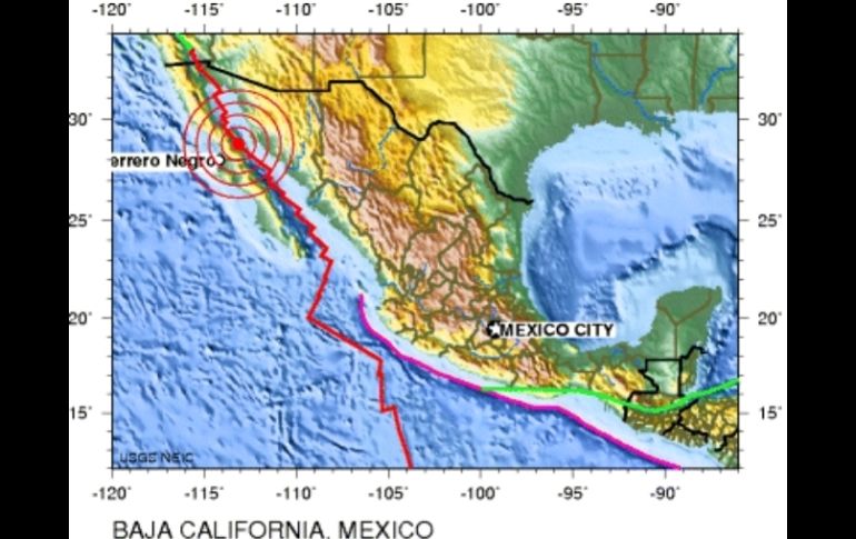 México | Es el cuarto movimiento de gran intensidad en menos de un mes Fuerte sismo frente a las costas de la península de Baja California El sismo presentó un magnitud de 6.9 grados, no se reportan daños mayores o víctimas y tuvo epicentro en la costa de Michoacán Por: AFP 12 de abril de 2012 - 02:55 hs Diagrama de la ubicación del epicentro difundido por el Servicio Geológico de Estados Unidos. ESPECIAL / BAJA CALIFORNIA SUR (12/ABR/2012).- Un fuerte sismo de 6.9 de magnitud según el Servicio Geológico de Estados Unidos (USGS), sacudió en la madrugada de este jueves la costa de México sobre el oceáno Pacífico, frente a la península de Baja California Sur (noroeste). El sismo tuvo su epicentro 109 km del poblado de Guerrero Negro hacia las 02:15 (07:15 GMT), con una profundad de 10 km, según los datos preliminares del Servicio Sismológico de México. No hubo reportes iniciales de daños o de víctimas, señaló el servicio de Protección Civil. El movimiento no fue percepetible aparentemente para la población en la capital mexicana. Se trata del cuarto sismo de gran intensidad que se registra en menos de un mes en las costas del Pacífico de México. Al atardecer del miércoles se registró un sismo de magnitud de 6.5 que remeció buena parte del oeste y centro del país, incluida la capital del país donde generó alarma, pero sin que se informaran de daños mayores o víctimas y tuvo epicentro en la costa de Michoacán (oeste). El 20 de marzo se registró otro sismo de magnitud 7.4 con epicentro entre los estados de Oaxaca y Guerrero (sur), que dejó dos muertos, una decena de heridos y miles de viviendad destruidas y del cual se han registrado más de 300 réplicas, la más fuerte de 6.3 en la escala de magnitud momento, el 2 de abril. Temas Sismos nacional Estados Baja California Sur Lee También Lista actualizada de selecciones que ya clasificaron al Mundial 2026 Reportan dos muertos por lluvias en México Trump amenaza con "incremento masivo" de aranceles a China El efecto Donald Trump Recibe las últimas noticias en tu e-mail Todo lo que necesitas saber para comenzar tu día Registrarse implica aceptar los Términos y Condiciones
