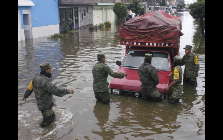 México | La Sedena aplica el Plan DN-III-E en Estado de México, Hidalgo y Veracruz Golpe de 'Arlene' activa a militares para asistir a damnificados La Sedena aplica el Plan DN-III-E en Estado de México, Hidalgo y Veracruz Por: SUN 1 de julio de 2011 - 13:54 hs Calculan que 278 mil personas resultaron afectadas por el paso del fenómeno. EFE / -'Arlene' cobra sus primeras víctimas, continúan estragos -Reportan saldo blanco en Querétarotras el paso de "Arlene"-''Arlene'' traerá jornada de lluvias a Jalisco CIUDAD DE MÉXICO (01/JUL/2011).- La Secretaría de la Defensa Nacional (Sedena) aplica el Plan DN-III-E en el Valle de México y los estados de Veracruz e Hidalgo debido a los estragos causados por la tormenta tropical “Arlene”. La dependencia desplegó efectivos militares y autoridades civiles para atender las necesidades de la población afectada. De acuerdo con un comunicado, en el Valle de México y luego del desbordamiento del Río de los Remedios se encuentran desplegados mil 580 elementos del Ejército con 59 vehículos; el área del Bordo de Xochiaca 71 efectivos y tres vehículos apoyan en las labores de auxilio a la población; mientras que en el Canal de la Compañía laboran 31 elementos y dos vehículos. En el estado de Veracruz la Sedena extendió mil 186 efectivos militares, quienes ya han desalojado a 280 personas y realizan recorridos de vigilancia en áreas afectadas. Aproximadamente 300 personas más se encuentran alojadas en 19 refugios temporales. En lo que respecta al estado de Hidalgo 130 elementos del Ejercito se encuentran realizando actividades de apoyo, evaluación y desalojo de personas hacia refugios temporales. Balances provisionales de las entidades que padecieron los estragos más fuertes del fenómeno, estiman que hay unos 278 mil damnificados hasta el momento. Temas Sedena Estados Clima Tormenta tropical Recibe las últimas noticias en tu e-mail Todo lo que necesitas saber para comenzar tu día Registrarse implica aceptar los Términos y Condiciones