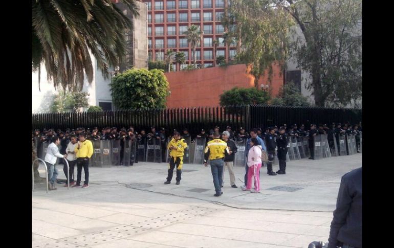 México | Profesores indican que es una amenaza de desalojo del Monumento a la Revolución Granaderos rodean plantón de la CNTE en el DF Los profesores indican que se trata de una presunta amenaza de desalojo del Monumento a la Revolución Por: EL INFORMADOR 5 de enero de 2014 - 16:12 hs En redes sociales han se difunden imágenes del gran despliegue de granaderos en el lugar. TOMADA DE @CindyRevolucion / CIUDAD DE MÉXICO (05/ENE/2014).- Integrantes de la Coordinadora Nacional de Trabajadores de la Educación ( CNTE) suspendieron este domingo la Asamblea Nacional representativa en las instalaciones de la Sección 9 del Distrito Federal por la presunta amenaza de desalojo del plantón que mantienen en el Monumento a la Revolución. De acuerdo con Nicodemus Baltazar, profesor de la Sección 22 de Oaxaca, en los alrededores de la zona fueron desplegados elementos de la Secretaría de Seguridad Pública capitalina que pretenden replegar las carpas que los docentes colocaron desde el pasado 13 de septiembre de 2013. En redes sociales han comenzado a difundirse imágenes que dan cuenta del gran despliegue de granaderos en el lugar. Los reportes indican que poco después de la 1:00 de la tarde arribaron a la Plaza de la República dos camiones de granaderos y varios policías a pie. Pese a esta situación, Núñez refirió que la intención de la Coordinadora es permanecer en el plantón y reactivar las movilizaciones en la Ciudad de México. Por su parte, Juan José Ortega, de la sección 18 de Michoacán, dijo al periódico Milenio que la única manera de desalojarlos es a través de la fuerza, pues, refirió, en el diálogo que sostuvieron con el titular de Concertación Social del GDF, jamás se negoció el desalojo magisterial. El posible desalojo se da luego de que los integrantes de la CNTE anunciaran que a partir del próximo 7 de enero más docentes reforzarían el plantón del Monumento a la Revolución. El 13 de septiembre, los maestros ya fueron desalojados del Zócalo capitalino, pero, en aquella ocasión, por policías federales. La CNTE inició su plantón en la capital del país el 19 de agosto para protestar por las nuevas condiciones para el sector impuestas en la Reforma Educativa, principalmente la evaluación a la que deben someterse los docentes. Sinembargo.mx Temas SSPDF Estados Ciudad de México CNTE Manifestaciones en la Cd. de México Recibe las últimas noticias en tu e-mail Todo lo que necesitas saber para comenzar tu día Registrarse implica aceptar los Términos y Condiciones