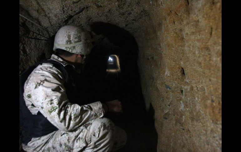 México | El pasadizo clandestino localizado en Tijuana tiene 800 metros de longitud Hallan 17 toneladas de mariguana en túnel fronterizo El pasadizo clandestino localizado en Tijuana tiene 800 metros de longitud y llega a Otay Mesa, en Estados Unidos Por: AFP 26 de noviembre de 2010 - 15:54 hs Un soldado en el túnel descubierto en Tijuana el 25 de noviembre. REUTERS / TIJUANA, BAJA CALIFORNIA (26/NOV/2010).- Más de 17 toneladas de mariguana, 13 de ellas en Estados Unidos y cuatro en México, fueron descubiertas junto con un túnel clandestino que cruza la frontera entre ambos países desde Tijuana, informó el viernes el Ejército mexicano. La entrada del túnel fue descubierta la noche del jueves en una vivienda, dentro de la que se "localizó un camión con cuatro toneladas de mariguana" mientras que del "lado estadounidense se aseguraron más de 13 toneladas" de la droga, informó a la prensa personal de la II región militar del Ejército. El pasadizo atraviesa un predio ubicado entre una casa en Tijuana y un almacén en la zona industrial de Otay Mesa (California, Estados Unidos). En el operativo del jueves también fueron detenidos seis presuntos narcotraficantes, además de que, en otro punto de la ciudad, se decomisó poco más de media tonelada de mariguana que aparentemente iba a ser traficada a través del túnel, según la versión. El túnel, construido a 12 metros de profundidad, tiene 800 de longitud, 1.50 de altura y 1 de ancho, detalló el Ejército. Este pasadizo clandestino fue localizado a dos calles de otro túnel que fue descubierto a principios de noviembre, lo que condujo al decomiso récord de casi 25 toneladas de mariguana del lado estadounidense. También en Tijuana, fronteriza con la ciudad estadounidense de San Diego, tuvo lugar hace poco más de un mes el decomiso de más de 134 toneladas de mariguana, el mayor de la historia de México. En Tijuana, el cruce fronterizo más transitado de México, actúa el cártel de los Arellano Félix y otras organizaciones a las que se les atribuye la construcción de estos túneles para el trasiego de droga. En el último año se han descubierto en la zona una decena de túneles que son utilizados para contrabando de drogas e ingreso de inmigrantes indocumentados a Estados Unidos. Temas Crimen Organizado Ejército Tijuana .Mariguana Recibe las últimas noticias en tu e-mail Todo lo que necesitas saber para comenzar tu día Registrarse implica aceptar los Términos y Condiciones