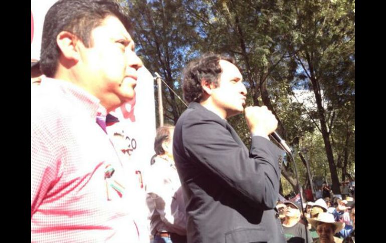 México | Pide a los simpatizantes de Morena evitar que se acepte la Reforma Energética Hijo de López Obrador llama a mantener cerco en el Senado Pide a los simpatizantes de Morena evitar que se acepte la Reforma Energética Por: SUN 7 de diciembre de 2013 - 15:03 hs Andrés Manuel López Beltrán quiere que simpatizantes de Morena sigan en la lucha. Tomada de: @AllamArguello. ESPECIAL / CIUDAD DE MÉXICO (07/DIC/2013).- Andrés Manuel López Beltrán, hijo de Andrés Manuel López Obrador, fundador de Morena, acudió este sábado al cerco que mantienen integrantes de este movimiento entorno al Senado de la República para informar que su padre salió hoy del hospital y llamar a los manifestantes a mantenerse en el cerco. López Beltrán añadió que hasta la una de la tarde los senadores no se habían reunido para la entrega del predictamen de la Reforma Energética, a pesar de que tenían programada una reunión a las 10: 30 horas. "No se ha hecho esa reunión, por lo que creemos que se echarán para atrás hoy también" dijo al participar en un breve mitin junto con líderes de Morena como Clara Brugada, Martín del Campo, además de la diputada Ernestina Godoy. En breve entrevista posterior, el hijo del político tabasqueño rechazó ser quien encabece este cerco pacífico. Sobre la salud de su padre Andrés Manuel López Beltrán dijo que salió del hospital y se encuentra en su casa desde las 11:00 horas y tendrá que pasar por un periodo de recuperación de un mes. Durante el mitin que se realizó a la altura del cruce de Reforma y Avenida de la República, los líderes de Morena señalaron que no van a permitir la reforma en materia energética. Temas Reforma Energética Política Senado AMLO Morena (Partido político) Recibe las últimas noticias en tu e-mail Todo lo que necesitas saber para comenzar tu día Registrarse implica aceptar los Términos y Condiciones
