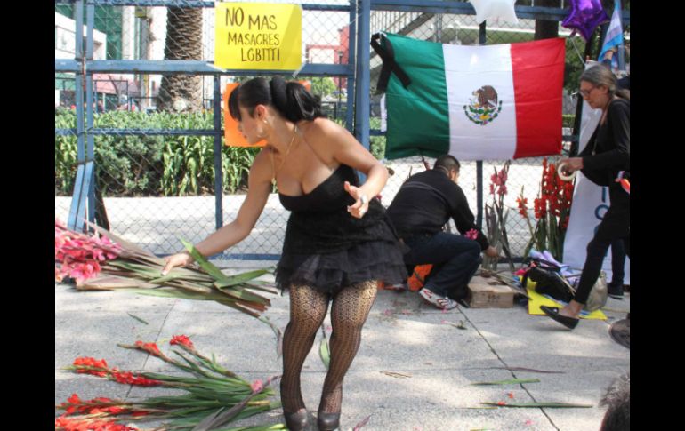 México | Los manifestantes montaron la ofrenda con gladiolas y banderas de arcoíris Homosexuales en México honran a víctimas de ataque en Orlando Los manifestantes montaron la ofrenda con gladiolas, banderas de arcoíris y un moño negro frente a la embajada de EU Por: NTX 14 de junio de 2016 - 18:48 hs CIUDAD DE MÉXICO (14/JUN/2016).- Con una ofrenda frente a la Embajada de Estados Unidos en México, integrantes de la comunidad lésbico, gay, bisexual y transexual honraron a las víctimas del tiroteo en una discoteca en Orlando, Florida. Los manifestantes montaron la ofrenda con gladiolas, banderas del arcoíris y un moño negro frente a la representación diplomática de la Unión Americana, ubicada en Paseo de la Reforma. "Nuestra memoria y palabras van hacia nuestros 50 hermanos asesinados en la discoteca 'Pulse', de Orlando, Florida, hace tres días, por un desequilibrado homofóbico que fue baleado en el mismo sitio", indicó uno de los asistentes. El evento concluyó luego de que los integrantes de la comunidad lanzaron gladiolas hacia la ofrenda improvisada al grito de "No más muertos por homofobia y transfobia. La ignorancia mata". Temas Tiroteo Estados Ciudad de México Tiroteo en Orlando Recibe las últimas noticias en tu e-mail Todo lo que necesitas saber para comenzar tu día Registrarse implica aceptar los Términos y Condiciones