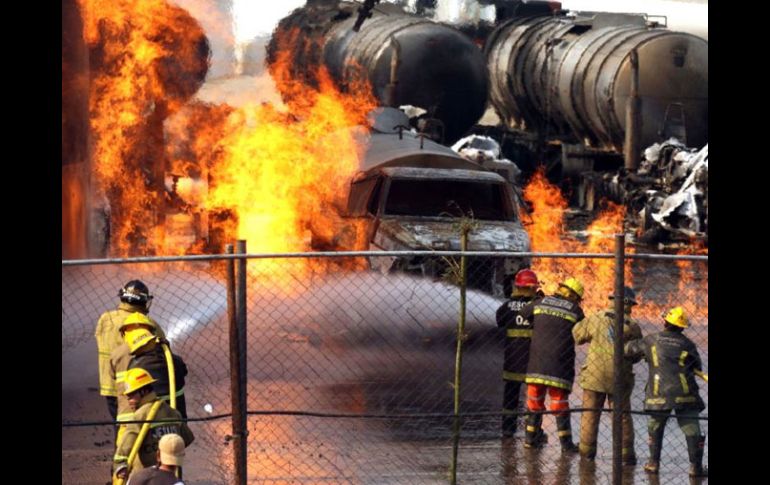 México | Un tanque con etanol se incendió y sobrevinieron al menos tres explosiones Incendio causa cuatro muertes y desalojo de 600 familias Un tanque con etanol se incendió y sobrevinieron al menos tres explosiones Por: EL INFORMADOR 3 de abril de 2011 - 02:52 hs La explosión y posterior incendio provoca el desalojo de cientos de familias. EL UNIVERSAL / VERACRUZ (03/ABR/2011).- Un saldo de al menos cuatro muertos —según datos extraoficiales—, tres personas lesionadas y el desalojo de sus viviendas de cerca de 600 familias, dejó una fuerte explosión y posterior incendio en el interior de una alcoholera asentada en la zona centro del estado de Veracruz. Un tanque que almacenaba etanol para la elaboración del alcohol se incendió y sobrevinieron al menos tres explosiones; aunque 12 horas después del accidente no existía versión oficial del número de fallecidos. Temas Incendios Estados Veracruz Lee También Sheinbaum ajusta su agenda para atender emergencia por lluvias Organismo internacional prevé tensión comercial a nivel global en 2026 Zacatecas y La Antigua: Viaje a dos joyas históricas de México Raymond toca tierra como ciclón post-tropical Recibe las últimas noticias en tu e-mail Todo lo que necesitas saber para comenzar tu día Registrarse implica aceptar los Términos y Condiciones