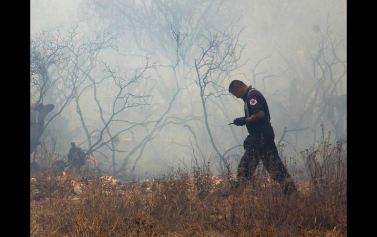 México | En el lugar trabajan brigadistas de Conafor, protección civil, entre otros Incendio forestal en SLP continúa activo Los trabajos de combate seguirán hasta que se logre un avance en el control del siniestro Por: NTX 4 de abril de 2013 - 17:21 hs Gerardo Cabrera asegura que el traslado aéreo se ha vuelto muy difícil por lo que requieren que brigadistas vayan a pie. ARCHIVO / SAN LUIS POTOSÍ, SAN LUIS POTOSÍ (04/ABR/2013).- A pesar de que controlaron dos puntos del incendio en la sierra de San Miguelito, otros dos están en una zona de difícil acceso y continúan activos, por lo que las autoridades trabajan para sofocarlos, informó Protección Civil. El titular de la Dirección de Protección Civil en el estado, Gerardo Cabrera Olivo, destacó que en el lugar combaten el siniestro brigadistas de Conafor, Protección Civil estatal y municipal, Sedena, Policía Federal, así como comuneros y ejidatarios de San Juan de Guadalupe. El funcionario estatal detalló que de acuerdo con el último sobrevuelo que se realizó en la zona afectada, es muy difícil el traslado aéreo, por lo cual será necesario que se trasladen más brigadistas, aunque esto tendrá que ser a pie y en un viaje por distintos senderos que dura más de dos horas. Agregó que el comité técnico que atiende la contingencia confirmó que hasta el momento ni el incendio ni el humo que genera el mismo han afectado a población o fauna de la zona, ni han llegado a las empresas instaladas en la zona industrial. Por último, resaltó que los trabajos de combate continuarán durante el resto de la tarde y la noche y se espera que mañana se tenga un considerable avance en el control del mismo, si las condiciones climáticas no empeoran. Temas San Luis Potosí Conafor Incendios Forestales Estados Recibe las últimas noticias en tu e-mail Todo lo que necesitas saber para comenzar tu día Registrarse implica aceptar los Términos y Condiciones