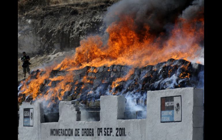 México | En las instalaciones militares del 28 Batallón de Infantería del Aguaje de la Tuna Incineran más de 11 toneladas de narcóticos en Tijuana Más de 11 toneladas de narcóticos, producto de diversos operativos antidrogas aplicados, fueron incinerados en una ceremonia en la que estuvieron presentes autoridades gubernamentales Por: NTX 10 de septiembre de 2011 - 15:36 hs Los resultados obtenidos se dieron gracias a la coordinación de diversos organismos. NTX / CIUDAD DE MÉXICO (10/SEP/2011).- La Procuraduría General de la República (PGR) en Tijuana incineró más de 11 toneladas de narcóticos asegurados en Baja California, relacionados con diversas averiguaciones previas y causas penales. En un comunicado la dependencia precisó que el acto se realizó en las instalaciones militares del 28 Batallón de Infantería del Aguaje de la Tuna, en presencia de autoridades de los tres órdenes de gobierno que verificaron la autenticidad y peso de los narcóticos. En ese lugar se destruyeron 11 toneladas 213 kilos 868 gramos de mariguana, 45 kilos 908 gramos de cocaína, 19 kilos 30 gramos de metanfetamina, tres kilos 512 gramos de heroína, 30 plantas de mariguana, 384 pastillas psicotrópicas y nueve kilos de semilla de mariguana. La incineración se realizó conforme a lo establecido en el Programa de Destrucción de Narcóticos y en cumplimiento a lo dispuesto por el Artículo 181 del Código Federal de Procedimientos Penales que prevé la eliminación de los objetos instrumentos del delito. La PGR señaló que estos resultados reflejan la coordinación entre autoridades federales, estatales y municipales en materia de seguridad y procuración de justicia. Temas Narcotráfico Tijuana Estados Recibe las últimas noticias en tu e-mail Todo lo que necesitas saber para comenzar tu día Registrarse implica aceptar los Términos y Condiciones