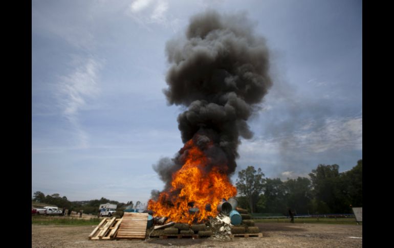 México | Hubieran representado un ingreso de entre 13 y 16 MDP para los criminales Incineran más de seis toneladas de droga en Zacatecas Los narcóticos destruidos hubieran representado un ingreso de entre 13 y 16 MDP para los criminales Por: SUN 29 de julio de 2015 - 19:50 hs Califican el suceso como la incineración de estupefacientes más grande en la historia reciente de Zacatecas. EL INFORMADOR / ARCHIVO ZACATECAS, ZACATECAS (29/JUL/2015).- Este miércoles se realizó la quema de seis toneladas 698 kilogramos de narcóticos, decomisados por militares en la entidad el 27 y 28 de junio de 2015. El delegado estatal de la Procuraduría General de la República ( PGR) en Zacatecas, Sergio Martínez Escamilla, calificó el suceso como la incineración de estupefacientes más grande en la historia reciente de Zacatecas. Por la mañana, en un campo abierto, los agentes le prendieron fuego a seis toneladas con 786 gramos de mariguana, 60 gramos de cocaína y seis unidades psicotrópicas. El delegado de la PGR explicó que los narcóticos destruidos equivalían a 60 mil dosis de droga en el mercado negro, hubieran representado un ingreso de entre 13 y 16 millones de pesos para los criminales. En el primer operativo los elementos castrenses decomisaron 1.5 toneladas y en el segundo 5.3 toneladas de narcóticos. La droga está relacionada con tres averiguaciones previas de procesos penales del Sistema Tradicional y dos carpetas del nuevo Sistema Penal Acusatorio, por la probable comisión de delitos contra la salud en sus diversas modalidades. El delegado de la PGR reconoció el esfuerzo, valentía y sobre todo el compromiso que ha demostrado el Ejército Mexicano en la entidad y en el mismo sentido se pronunció el secretario General de Gobierno, Jaime Santoyo Castro. Como testigos de la destrucción de los narcóticos estuvieron la procuradora de Justicia del estado, Leticia Soto Acosta; el comandante de la 11va. Zona Militar, Antelmo Rojas Yáñez; el secretario de Seguridad Pública, Jesús Pinto, el inspector José de Jesús Hernández, representante de la Policía Federal, así como Víctor Manuel Bosque Rodríguez, subsecretario de Inteligencia y el capitán de fragata Julio César Balderas Mora, encargado de la Base de la Marina en Fresnillo. Temas PGR Estados Drogas Zacatecas Lee También China amenaza con "pelear hasta el final" si EU mantiene los nuevos aranceles Estos son los estados en alerta por posible propagación de dengue Despliegan operativo tras bloqueos en Chiapas Así se prevé que avance el desarrollo de "Sonia" en México Recibe las últimas noticias en tu e-mail Todo lo que necesitas saber para comenzar tu día Registrarse implica aceptar los Términos y Condiciones