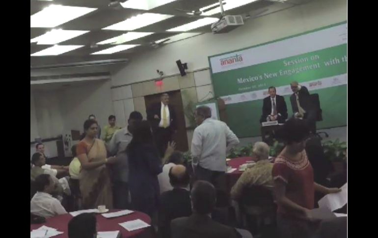 México | Hindúes y mexicanos manifiestan su apoyo y piden justicia desde Nueva Delhi Increpan a Meade en India por caso Ayotzinapa Hindúes y mexicanos manifiestan su apoyo y piden justicia desde Nueva Delhi Por: EL INFORMADOR 23 de octubre de 2014 - 11:07 hs GUADALAJARA, JALISCO (23/OCT/2014).- En un video subido a YouTube, se puede ver cómo algunos manifestantes se presentan a una reunión donde estaba presente el secretario de Relaciones Exteriores, José Antonio Meade, y autoridades les piden que salgan del lugar. Una joven se acerca al estrado y manifiesta su inconformidad y pide justicia por lo acontecido hace ya casi un mes en Iguala, Guerrero, y ante eso Meade se mantiene pasivo, pero las autoridades de Nueva Delhi, inmediatamente les dijeron que abandonaran el lugar. En el video se expresa que hindúes se unieron a algunos mexicanos para realizar la protesta, con el propósito de manifestar su apoyo a México y su rechazo a las autoridades. Con carteles que dicen 'Todos somos mexicanos' y 'Vivos se los llevaron, vivos los queremos', los jóvenes salieron del lugar y continuaron su protesta pacíficamente, aun así, rápidamente llegó la policía a pedirles que abandonaran el lugar. Lo que hicieron enseguida. Las imágenes terminan con la frase 'Mexicanos sentimos su dolor. Los apoyamos'. Meade viajó a aquel país para participar en la Sexta Reunión de la Comisión Binacional México-India. Temas Manifestaciones en el mundo Estados Guerrero Desapariciones y denuncias José Antonio Meade Recibe las últimas noticias en tu e-mail Todo lo que necesitas saber para comenzar tu día Registrarse implica aceptar los Términos y Condiciones