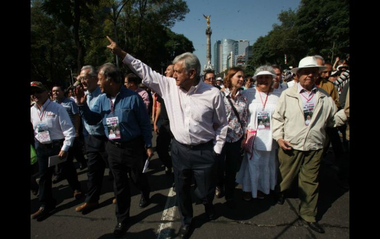 México | Inició la segunda marcha en contra de la privatización de Pemex y de la reforma hacenda Inicia segunda marcha de Obrador contra reformas Dio inicio la segunda marcha en contra de la privatización de Pemex y de la reforma hacendaria Por: SUN 6 de octubre de 2013 - 11:23 hs Segunda marcha contra la privatización de Pemex y la Reforma Hacendaria. SUN / CIUDAD DE MÉXICO (06/OCT/2013).- Andrés Manuel López Obrador inició este domingo en el Ángel de la Independencia su segunda marcha en contra de la privatización de Pemex y de la reforma hacendaria, misma que terminará con un mitin en El Caballito, en Reforma y Juárez. A la cabeza del contingente, que partió con 45 minutos de retraso, marchan el tabasqueño, acompañado de su esposa Beatriz Gutiérrez y su hijo José Ramón, además de líderes de izquierda e integrantes de la comunidad artística y cultural. Marchan también integrantes de la dirigencia del Movimiento Regeneración Nacional (Morena), como Jesús Martin Del Campo y Assa Cristina Laurell. En la descubierta, un recuadro resguardado por más de un centenar de responsables de "organización" marchan también, en el área "VIP" entre otros los senadores Alejandro Encinas y Manuel Bartlet, los ex diputados Porfirio Muñoz Ledo y Jaime Cárdenas, además de la escritora Laura Esquivel y el dirigente del PT Alberto Anaya. Temas Reforma Energética Privatización Pemex AMLO Reforma Hacendaria Lee También Harfuch y los medios Cartucho Diputados responden a Lemus sobre diálogo por la Reforma Judicial ¿Quién acepta? Recibe las últimas noticias en tu e-mail Todo lo que necesitas saber para comenzar tu día Registrarse implica aceptar los Términos y Condiciones