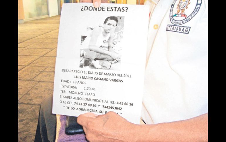 México | Mariano Casiano no pierde la esperanza de encontrar a su hijo Luis Mario Inseguridad entristece a padre en su día Mariano Casiano no pierde la esperanza de encontrar a su hijo Luis Mario, desaparecido desde marzo pasado en el Puerto Por: SUN 19 de junio de 2011 - 03:19 hs Mariano Casiano muestra la hoja la imagen de su hijo, Luis Mario, desaparecido desde hace dos meses y medio. EL UNIVERSAL / ACAPULCO, GUERRERO (19/JUN/2011).- Mario Casiano es un padre que ha sido víctima de la violencia y que desde hace dos meses y medio busca a su hijo Luis Mario Casiano Vargas, quien fue privado de su libertad el 25 de marzo de este año, cuando salía de la Preparatoria 17 junto con tres amigos para ir hacer una tarea; hasta el momento no hay rastros que lleven a su paradero. Mario, de 49 años de edad, denuncia que las autoridades no han hecho nada para investigar la desaparición de su hijo, y dice sentirse decepcionado de estar bajo un sistema de gobierno “que no responde a las necesidades del ciudadano”. En la mano trae una hoja tamaño oficio donde muestra la foto de su hijo con sus datos y teléfono, documento que en las últimas 10 semanas ha colocado en bardas y reparte a la gente en busca de ayuda. Luis Mario Casiano Vargas, de 18 años de edad, es el hijo menor de tres que tiene con su ex esposa. A pesar de haberse divorciado, asegura, siempre convivía con él, pues se veían todos los días en la Preparatoria 17, donde Mario trabaja desde hace 29 años como auxiliar de intendente. Recuerda que la última vez que vio a su hijo, la mañana del 25 de marzo, éste le pidió ayuda para abrir el gimnasio de la escuela y poder jugar con sus amigos fútbol, pero tuvo que rechazar la petición porque había clases en el lugar. Entonces, Luis Mario, junto con tres amigos, abordaron un taxi azul con blanco y se fueron hacia el centro cultural Fuerte de San Diego, donde harían una tarea, pero, de acuerdo a lo que indagó con testigos y amigos de su hijo, en la avenida Solidaridad un grupo de hombres armados a bordo de un vehículo blanco los sacó del taxi y se los llevó. Continúa la violencia Han pasado dos meses y medio y Mario no ha tenido contacto con quienes privaron la libertad de su hijo, ni ha tenido información por parte de la Procuraduría de Justicia sobre las investigaciones, pese a que funcionarios del actual Gobierno guerrerense se comprometieron a ayudarle. Dice que de nada han servido los operativos de las Bases de Operaciones Mixtas Urbanas porque la violencia, a la que calificó de “aberrante y que da miedo”, continúa. “Qué confianza hay de la familia de gente común y corriente si los ciudadanos nos tenemos que cuidar al salir a las calles, porque nos tenemos que cuidar no sabemos si de la policía o de la de delincuencia organizada”. Este papá, quien por las tardes maneja un taxi después de terminar su trabajo en la Preparatoria 17, comenta que todos los días la ciudadanía es víctima de la violencia, desapariciones forzadas y asesinatos. La rutina de Mario ahora es la misma: cada día se levanta a comprar los periódicos para buscar si entre las personas asesinadas que se mencionan en las notas policiacas hay indicios del paradero de su hijo. Dice, con miedo, que también visita las instalaciones del Servicio Médico Forense cuando llegan de cinco a 10 muertos que encuentran en las fosas clandestinas o cuando matan a un joven o lo encuentran semienterrado. La esperanza de que regresa En el marco del Día del Padre, Mario con la voz cortada expresa que le duele mucho que su hijo menor no esté a su lado, y para él, Luis Mario está vivo y tiene la esperanza de que algún día regrese. “A casi dos meses y medio, lo único que puedo pensar es que mi hijo está vivo y que algún día lo voy a ver, tengo la esperanza y la fe”, dice Mario mientras se le empieza a cortar la voz. Recuerda a su hijo como un joven cariñoso que “sí se veían tres veces en la escuela, donde casi estaba al pendiente de lo que hacía”. De lunes a viernes almorzaban juntos. Él, como padre, asegura que era “un cuchillito de palo” al aconsejarle constantemente que siempre anduviera por el buen camino y que se juntara con chicos buenos, que se preparará para una licenciatura. Mario Casiano señala que cuando se vive en carne propia la desaparición de un hijo, la desesperación de la impunidad se recrudece. “Quizás se topen (las autoridades investigadoras) en la calle con gente y sean los que se llevaron a su hijo (...). Hay tantas cosas que te pasan por la cabeza que da tristeza, y la injusticia al no tener respuesta de las autoridades. “Yo veía sus actividades y ni pensar de que no me di cuenta de que si mi hijo estaba metido en el crimen organizado, si siempre veía lo que hacía, siempre veía a la hora que salía y llegaba a casa de su madre, a pesar de que no vivíamos juntos”. Mario ha participado en el Taller de Desarrollo Comunitario, donde se documentan los casos de jóvenes desaparecidos y asesinados. Escasean los papás “solteros” en MéxicoCenso Inegi 2010 Dos de cada 100 hogares mexicanos en los que habita el padre se conforman sólo por el papá con sus hijos, muestran datos del Censo 2010 del Instituto Nacional de Estadística y Geografía (Inegi). En México, cuatro de cada 10 papás tienen de 30 a 44 años de edad, y tres de cada 10 entre 45 y 59 años; los adultos mayores (60 años y más) y los jóvenes (menores de 30) representan juntos poco más de la cuarta parte del total. En cuanto a la situación conyugal, en los hogares conformados por padre, madre e hijos, en tres de cada cuatro la pareja está casada; el resto vive en unión libre. Destaca que cuando el padre es menor de 30 años la distribución es casi equitativa entre los casados y los que viven en unión libre (54%); en edades posteriores predominan las parejas casadas de manera creciente mientras mayor es el padre. Más de la tercera parte de los padres que habitan lo