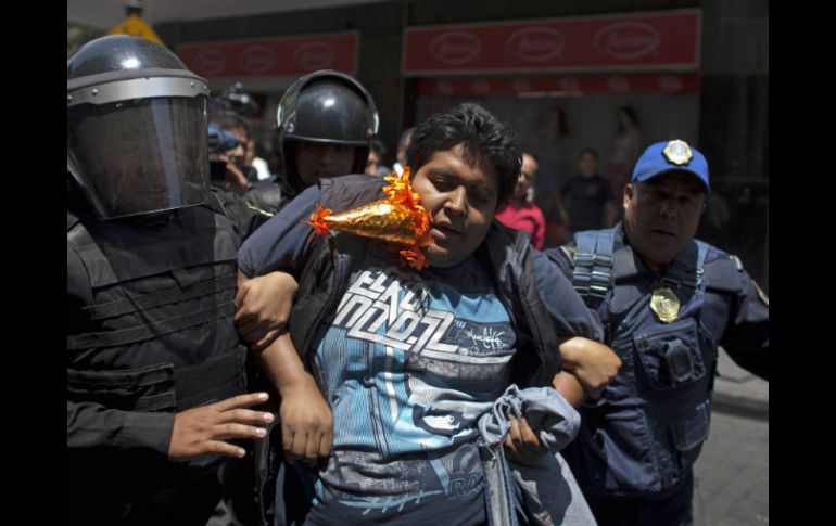 México | Cinco locatarios son investigados por ataques a granaderos Investigan a comerciantes detenidos en el DF La PGJDF investiga a cinco locatarios del mercado de La Merced por ataques a las vías de comunicación y ultrajes a la autoridad Por: NTX 27 de marzo de 2013 - 19:40 hs Los detenidos se encuentran bajo la disposición de la PGJDF para rendir sus declaraciones. AP / CIUDAD DE MÉXICO (27/MAR/2013).- La Procuraduría General de Justicia del Distrito Federal (PGJDF) investiga a cinco locatarios del mercado de La Merced por los delitos de ataques a las vías de comunicación y ultrajes a la autoridad tras su arresto en el Centro Histórico durante un enfrentamiento con granaderos. Autoridades de la dependencia informaron que el camión torton, matrícula 130 DC2, que se les aseguró con un kilo de pirotecnia, fue trasladado a la base del Agrupamiento Fuerza de Tarea, para precisar el tipo de explosivos que contenía. Dicha unidad formaba parte de una manifestación de locatarios del mercado de La Merced y de acuerdo con las primeras investigaciones, llevaba escondido material pirotécnico entre la fruta que transportaba. Los comerciantes pretendían hacer detonar los cohetes en el Zócalo capitalino, simulando el incendio de la nave mayor ocurrido hace un mes, por lo que el camión se aseguró en el cruce de la avenida 20 de Noviembre y República de Uruguay. En el mismo lugar fueron detenidos Jorge Rodríguez Pérez, de 19 años; Luis Soto Cortés, de 46; Mario Quiroz Ríos, de 23; así como los hermanos Ulises y Edgar Mendieta González, de 37 y 32 años, respectivamente. Los detenidos rinden declaración en la Agencia Central de Investigación de la PGJDF, donde en breve el agente del Ministerio Público determinará su situación jurídica. Temas Estados Ciudad de México Detenidos en México Recibe las últimas noticias en tu e-mail Todo lo que necesitas saber para comenzar tu día Registrarse implica aceptar los Términos y Condiciones