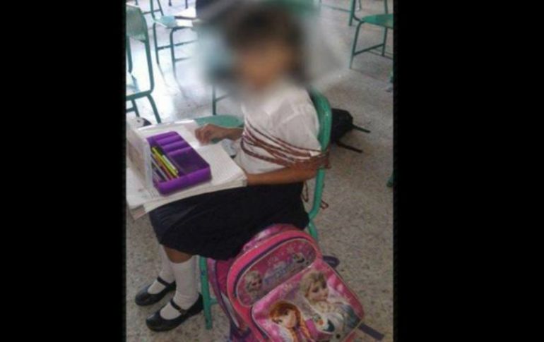 México | La menor fue amarrada bajo el pretexto de que es 'muy inquieta', dice Derechos Humanos Investigan en Veracruz caso de niña amarrada a su pupitre Derechos Humanos detalla que la menor fue amarrada bajo el pretexto de que es 'muy inquieta' Por: SUN 23 de mayo de 2016 - 21:44 hs El acta levantada señala que fue la madre de la menor quien pidió a la maestra que mantuviera amarrada a la menor. ESPECIAL / XALAPA, VERACRUZ (23/MAY/2016).- La Comisión Estatal de Derechos Humanos de Veracruz abrió una queja de oficio por el caso de una alumna de primaria que fue amarrada a su butaca bajo el pretexto de que es "muy inquieta". La presidenta de dicho organismo, Namiko Matzumoto Benítez, informó que desde que tuvieron conocimiento del caso registrado en el municipio de Nanchital, al sur de Veracruz, se abrió queja de oficio. Explicó que la Dirección de Atención a Mujeres, Grupos Vulnerables y Atención a Víctimas abrió la queja número 571/2016, con lo cual iniciaron una investigación de los hechos ocurridos la semana pasada. “Implicará solicitar un informe a autoridades educativas y una vez que tengamos los elementos se determinará si emite o no una recomendación”, expuso. Y es que las autoridades educativas de Veracruz también abrieron una investigación contra maestros y directivos de una escuela que permitieron que una niña fuera amarrada a su banca dentro del salón de clases. Gracias a las redes sociales, se descubrió que una maestra en el municipio de Nanchital, en el sur de Veracruz, permitió que se mantuviera amarrada a una alumna de primaria bajo el pretexto de que es "muy inquieta". La titular de la Secretaría de Educación de Veracruz, Xóchitl Adela Osorio Martínez, reveló que la menor es alumna de la escuela primaria Miguel Hidalgo y Costilla, del municipio de Nanchital. La funcionaria estatal, aseguró que el acta levantada por el incidente, señala que fue la madre de la menor la que le pidió a la maestra que mantuviera amarrada a la menor. Temas Estados Veracruz Niños Lee También "Raymond" baja su potencia, pero tocará tierra en horas En Hidalgo, caminos destrozados complican rescates y ayuda Así se celebrará en Guanajuato el Día de Muertos Lluvias dejan 37 muertos en cuatro estados de México Recibe las últimas noticias en tu e-mail Todo lo que necesitas saber para comenzar tu día Registrarse implica aceptar los Términos y Condiciones