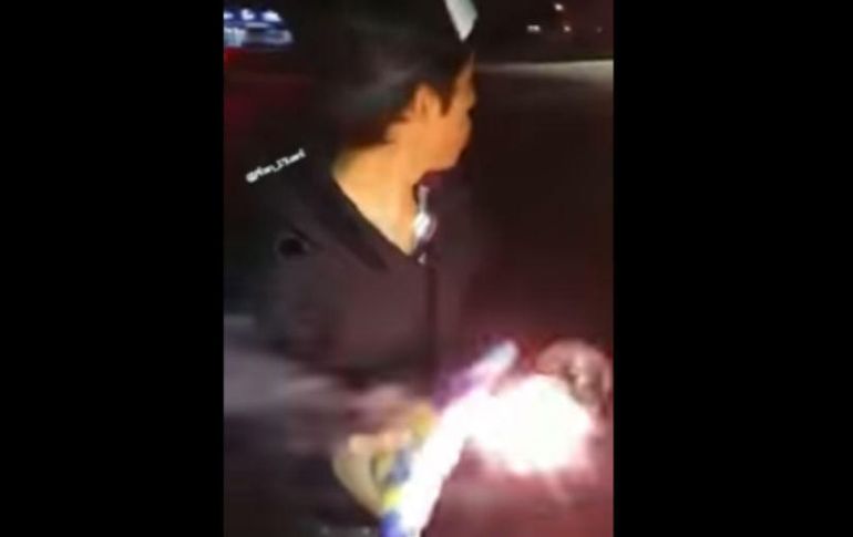 CIUDAD DE MÉXICO (03/ENE/2017).- Un grupo de jóvenes, en presunto estado de ebriedad, encendieron un cohete y lo arrojaron contra una gasolinera, así lo registró un video que se ve en la plataforma de YouTube.Según los reportes, el hecho tuvo lugar en el municipio de Apodaca, en Nuevo León.En la grabación puede verse a un joven, el cual sostiene un explosivo, conocido como paloma, y una cerveza."Le voy a dar en su madre al pin... Donald Trump, que chingue a su ma... el América y a la ve... el gasolinazo", expresa el muchacho mientras sus amigos ríen.Momentos después, con ayuda de un encendedor, uno de los acompañantes del chico prende el cohete, el cual es lanzado contra el centro de distribución de combustible.Dos mujeres que pasaban por el sitio huyen al ver la acción de los muchachos.No obstante, la paloma no llega a la gasolinera y explota a unos metros de ahí.Luego de gritar, los muchachos ríen y festejan la acción de su amigo.