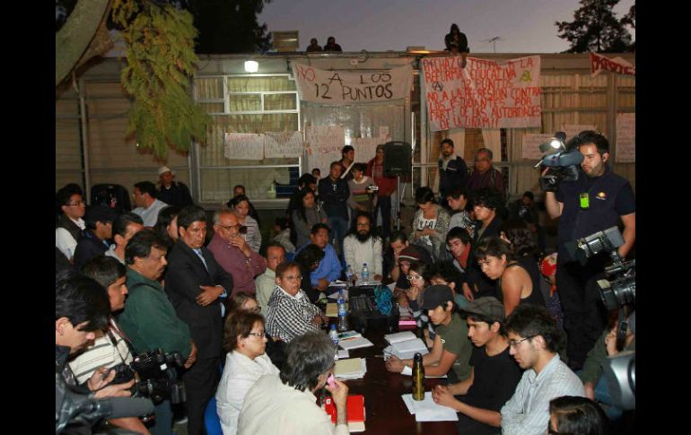 México | Tras no asistir a la última reunión, proponen la nueva fecha Jóvenes del CCH proponen reanudar diálogo el martes Luego de no asistir a la última reunión con la directora general del CCH, proponen la nueva fecha mediante un comunicado Por: NTX 17 de febrero de 2013 - 14:44 hs Imagen tomada en una de las reuniones entre las dos partes para destrabar el conflicto. ARCHIVO / CIUDAD DE MÉXICO (17/FEB/2013).- Los jóvenes que tienen tomadas las instalaciones de la Dirección General del Colegio de Ciencias y Humanidades (CCH) propusieron reanudar el diálogo con las autoridades de este sistema educativo el martes 19 de febrero a las 15:00 horas. Luego de que no asistieron a la última reunión con la directora general del CCH, Laura Muñoz Corona, convocada por ellos mismos para el jueves 14 de febrero, con el argumento de que no la vieron llegar, las personas que tienen ocupadas las oficinas de la dirección propusieron la nueva fecha mediante un comunicado. Asimismo, anunciaron que efectuarán una marcha del CCH Sur a la Rectoría y externaron una vez más su disposición al diálogo, e insistieron en la reinstalación de los seis estudiantes que fueron expulsados del CCH Naucalpan. El primer argumento que esgrimieron para la toma de las instalaciones fue su rechazo a las reformas a los planes y programas de estudio, cuya consulta ya fue aplazada hasta finales de noviembre por el Consejo Técnico del CCH, a petición de la directora. En el comunicado, también informaron que en la consulta que llevaron a cabo el miércoles 13 de febrero en los cinco planteles del CCH, hubo una participación de casi 15 mil alumnos, cuyos resultados se comprometieron a difundir cuanto antes. Temas UNAM Estados Distrito Federal Manifestaciones en la Cd. de México Recibe las últimas noticias en tu e-mail Todo lo que necesitas saber para comenzar tu día Registrarse implica aceptar los Términos y Condiciones