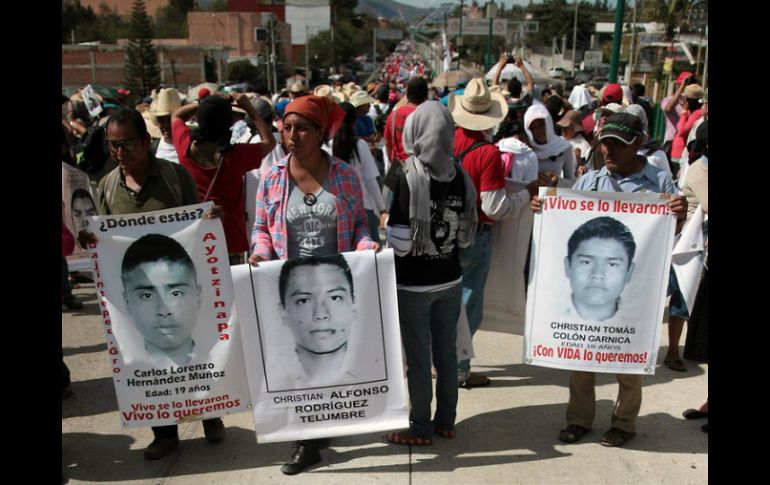 México | Padres de los normalistas desaparecidos encabezan el contingente La CETEG marcha sobre la Autopista del Sol por caso Iguala Con gallardetes en mano, donde se leen los nombres de los normalistas y está impreso su rostro, los padres de familia encabezan el contingente Por: SUN 9 de marzo de 2015 - 12:52 hs El contingente ocupa el sentido norte-sur de la vía de cobro. EFE / ARCHIVO CHILPANCINGO, GUERRERO (09/MAR/2015).- Maestros de la Coordinadora Estatal de Trabajadores de la Educación de Guerrero (CETEG) marchan sobre la Autopista del Sol en respaldo a los padres de familia de los 43 normalistas de Ayotzinapa en su lucha por la presentación con vida de sus hijos. Con gallardetes en mano, donde se leen los nombres de sus hijos y está impreso su rostro, los padres de familia encabezan el contingente. Los profesores recordaron que otra de sus exigencias es justicia por la muerte de su compañero Claudio Castillo Peña, tras el desalojo violento del 24 de febrero en Acapulco. Al micrófono los maestros advierten que seguirán su lucha por la presentación con vida de los normalistas de Ayotzinapa, pero también se organizan para echar abajo la reforma educativa y las demás reformas estructurales, que consideraron regresivas para los derechos de la sociedad. La marcha está compuesta por unas dos mil personas que pretenden llegar a la parte sur de la Autopista del Sol, en el punto conocido como Parador del Marqués, donde, anunciaron, realizarán un mitin. El contingente ocupa el sentido norte-sur de la vía de cobro. Temas Estados Guerrero Manifestaciones en México Caso Ayotzinapa Recibe las últimas noticias en tu e-mail Todo lo que necesitas saber para comenzar tu día Registrarse implica aceptar los Términos y Condiciones