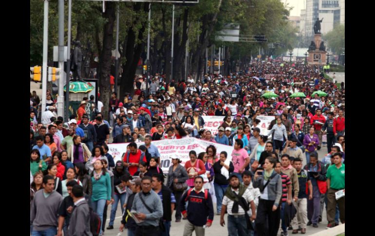 México | Impiden el paso vehicular en ambos sentidos de dicha vialidad La CNTE realiza un bloqueo indefinido en Reforma Impiden el paso vehicular en ambos sentidos de dicha vialidad Por: SUN 25 de septiembre de 2013 - 16:29 hs Maestros de la CNTE realizan distintas movilizaciones en rechazo a la reforma educativa. SUN / CIUDAD DE MÉXICO (25/SEP/2013).- Dirigentes de las secciones 7 y 40 de la Coordinadora Nacional de Trabajadores de la Educación ( CNTE) acuerdan que bloquearán desde El Caballito en Paseo de la Reforma, hasta la Glorieta de Cuauhtémoc, mientras que las secciones 9, 10 y 11 planearon quedarse en el cruce de Reforma e Insurgentes. Los profesores dijeron que se sentarían sobre la cinta asfáltica por tiempo indefinido para impedir el paso vehicular en ambos sentidos de dicha vialidad. Los dirigentes solicitaron a los manifestantes sentarse sobre el arroyo vehicular y no en las banquetas. En Insurgentes, la estación Reforma del Metrobús se encuentra cerrada este miércoles, en donde los camiones están dando vuelta en "u" hacia el norte de la ciudad. Cientos de usuarios de este sistema se bajaron sobre la avenida y caminaron hacia la Glorieta para poder llegar a sus destinos. Mientras tanto, en la Glorieta del Caballito, los maestros tienen la indicación de obstruir los accesos a Paseo de la Reforma, Bucareli, Hidalgo y Juárez. Los profesores procedentes de Michoacán tomaron un lugar de la avenida para descansar, mientras aguardaban noticias de quienes permanecían en la calzada de Chivatito. Temas Estados Ciudad de México CNTE Manifestaciones en la Cd. de México Lee También CURP Biométrica: ¿cuándo hay citas para el trámite en CDMX? Empresas de bebidas azucaradas se comprometen a reducir el contenido de azúcar Apple TV transmitirá la F1 en Estados Unidos México defiende impuesto a refrescos para "consumir menos" por salud Recibe las últimas noticias en tu e-mail Todo lo que necesitas saber para comenzar tu día Registrarse implica aceptar los Términos y Condiciones