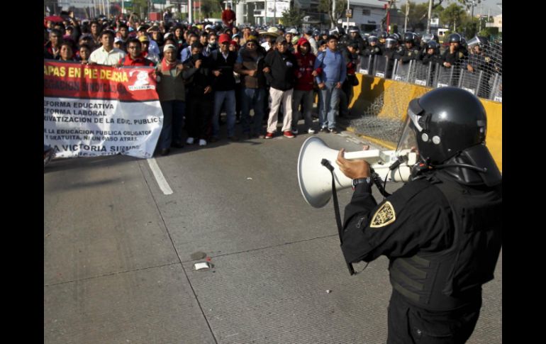 México | Demandan que Osorio Chong esté presente en la mesa programada para mañana La CNTE y Segob acuerdan nueva mesa de negociación Demandan que Osorio Chong esté presente en la mesa programada para mañana Por: SUN 1 de octubre de 2013 - 15:10 hs Tras permanecer en el AICM y en el cruce Reforma y Bucareli, los maestros comienzan su regreso al Monumento a la Revolución. SUN / CIUDAD DE MÉXICO (01/SEP/2013).- La dirigencia de la Coordinadora Nacional de Trabajadores de la Educación ( CNTE) acordó con la Secretaría de Gobernación una nueva mesa de negociación para mañana miércoles a la una de la tarde en la que se reitera la demanda de presencia del secretario de Gobernación, Miguel Ángel Osorio Chong. Rubén Núñez, Secretario General de la Sección 22 de Oaxaca, dijo que el resultado del cierre del Boulevard Puerto Aéreo, la marcha y el bloqueo en avenida Reforma fue una mesa de negociación con el subsecretario Luis Enrique Miranda; y con él se acordó una agenda de trabajo en la que se abordarán tres temas. Señaló que se revisará la llamada reforma educativa y las leyes secundarias. Asimismo, demandaron la participación directa de los maestros disidentes en el nuevo modelo educativo del país; y frenar la represión a los maestros de la CNTE, a esto de frenar lo llamaron "represión sindical, administrativas y laborales". Juan José Ortega Madrigal, Secretario General de la Sección 18 de Michoacán, dijo que en la agenda de trabajo se prevé una discusión sobre la reforma educativa que signifique gratuidad y que se escuche la propuesta de un modelo educativo que forme a las personas con base en la libertad, el respeto y los derechos de los trabajadores. Entre gritos que le demandan presencia de su contingente, el dirigente de Michoacán exhortó a que mañana se lleve a cabo una negociación y no "parchecitos". Exigen ser atendidos por Peña Nieto Ortega Madrigal, dijo que sólo plantearon la presencia de Osorio Chong o del Presidente Enrique Peña Nieto. "El planteamiento concreto es que debemos ser atendidos por el Presidente de la República, o en su defecto por el Secretario de Gobernación, eso lo dejamos sobre la mesa. Esperamos una respuesta pronta de ser atendidos por cualquiera de esos dos personajes". El dirigente magisterial señaló que al subsecretario Miranda también se le exigió el cese a la "represión física, administrativa y laboral" en contra de sus compañeros del magisterio disidente. Advirtió que las movilizaciones en la Ciudad de México seguirán y que la CNTE no ha pactado absolutamente nada. "Entonces nos reservamos nuestro derecho de seguir planificando nuestras acciones", sostuvo. Rubén Núñez, secretario general de la Sección 22 de Oaxaca, advirtió en que no desistirán en su agenda planteada al Gobierno Federal que tiene que ver con la revisión de la agenda educativa y el modelo educativo actual. Ortega aseveró que esta noche durante su asamblea nacional representativa definirán sí se integran a la marcha del 2 de Octubre. Inician regreso al Monumento a la Revolución Luego de permanecer por más de una hora en el cruce de Reforma y Bucareli, los maestros de la CNTE comenzaron a replegarse hacia su plantón en el monumento a la Revolución. Los maestros que mantenían un bloqueo en Reforma, a la altura de El Caballito, así como en avenida Bucareli, Juárez y Eje 1, poco a poco se dirigen hacia la concentración que mantienen en el monumento a la Revolución. Algunos profesores continúan en las inmediaciones, sin embargo autoridades de Seguridad Pública esperan que pueda ser reabierta la circulación en los cuatro carriles de Paseo de la Reforma. Temas Segob Estados Ciudad de México CNTE Manifestaciones en la Cd. de México Recibe las últimas noticias en tu e-mail Todo lo que necesitas saber para comenzar tu día Registrarse implica aceptar los Términos y Condiciones
