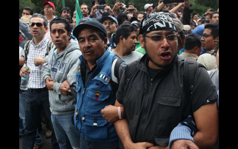 México | Recorrieron calles de la capital y arribaron al plantón en el Zócalo La CNTE y padres de los 43 marchan en Oaxaca Recorrieron calles de la capital y arribaron al plantón en el Zócalo Por: SUN 2 de agosto de 2015 - 13:57 hs Planean unir fuerzas para exigir justicia. NTX / ARCHIVO OAXACA, OAXACA (02/AGO/2015).- Maestros de la Sección 22 del CNTE, padres de familia y alumnos de la escuela Normal Rural "Raúl Isidro Burgos", de Ayotzinapa, realizaron una marchan en demanda de la presentación con vida de los 43 estudiantes desaparecidos el 26 de septiembre de 2014. Luego de recorrer las calles de la capital oaxaqueña, los familiares llegaron al plantón que mantiene la Coordinadora en el Zócalo. Felipe de la Cruz, vocero del movimiento, advirtió que el próximo 26 de septiembre realizarán una marcha masiva en el Distrito Federal para exigir la renuncia del Presidente Enrique Peña Nieto, si es que no les dan resultados antes de que se cumpla un año de la desaparición de los jóvenes estudiantes. "Vamos a unir fuerzas para hacer justicia, por todos los desaparecidos. Debemos crear una lucha unitaria, no nos vamos a quedar con los brazos cruzados", enfatizó. Explicó que una caravana salió de Chiapas y recorrerá Oaxaca, Puebla, Tlaxcala, Morelos, Estado de México, Distrito Federal y Guerrero. La otra partió de Chihuahua y pasará por Coahuila, Durango, Zacatecas, Guanajuato, Jalisco, Colima, Michoacán y Guerrero. Temas Estados Oaxaca CNTE Manifestaciones en México Caso Ayotzinapa Lee También Detienen en Tabasco a menor vinculado con grupo delictivo Hoy No Circula lunes 13 de octubre 2025: Autos que descansan en CDMX y Edomex Revelan llamada al 911 con que se reportó la muerte de Diane Keaton Clara Brugada rinde su Primer Informe de Gobierno Recibe las últimas noticias en tu e-mail Todo lo que necesitas saber para comenzar tu día Registrarse implica aceptar los Términos y Condiciones