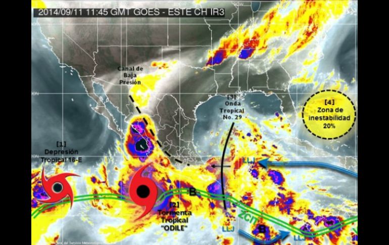 México | Se ubica a mil 250 kilómetros al suroeste de Cabo San Lucas, Baja California La Conagua señala formación de depresión tropical 16-E en el Pacífico Asimismo, la dependencia federal indicó que también se formó la depresión tropical SEIS en el Océano Atlántico, con desplazamiento hacia el Noroeste Por: SUN 11 de septiembre de 2014 - 10:53 hs CIUDAD DE MÉXICO (11/SEP/2014).- La mañana de este jueves se formó la depresión tropical 16-E en el Océano Pacifico, la cual se ubica a mil 250 kilómetros al suroeste de Cabo San Lucas, Baja California, y a 950 kilómetros de Isla Socorro. La Comisión Nacional del Agua ( Conagua) detalló que dicho fenómeno presenta vientos máximos sostenidos de 55 kilómetros por hora con rachas de 75 kilómetros por hora. Asimismo, la dependencia federal indicó que también se formó la depresión tropical "SEIS" en el Océano Atlántico, con desplazamiento hacia el Noroeste. Se localiza muy lejos de costas nacionales, por su lejanía y posible trayectoria no representa riesgo para México. El ciclón se encuentra a cinco mil 100 kilómetros al este de las costas de Quintana Roo, y a mil 400 kilómetros al oeste de Cabo Verde, África, tiene vientos máximos sostenidos de 55 kilómetros por hora, rachas de 75 kilómetros por hora, y trayectoria hacia el noroeste a 20 kilómetros por hora. En tanto, la tormenta tropical "Odile" se localiza aproximadamente a 370 kilómetros al suroeste de Lázaro Cárdenas, Michoacán, y a 410 kilómetros al sur de Manzanillo, Colima, por lo que se mantiene la zona de alerta desde Lázaro Cárdenas, Michoacán hasta Manzanillo, Colima. A las 10:00 horas, "Odile" registró vientos máximos sostenidos de 85 kilómetros por hora, rachas de hasta 100 kilómetros por hora, y desplazamiento hacia el oeste a 4 kilómetros por hora. La tormenta tropical generará potencial de lluvias torrenciales de 150 a 250 milímetros en zonas de Guerrero, Michoacán, Colima y Jalisco, e intensas de 75 a 150 milímetros en Nayarit y Sinaloa. Asimismo, favorecerá la entrada de humedad hacia el centro y noroeste del territorio, con lluvias fuertes de 25 a 50 milímetros en sitios de Baja California Sur, Distrito Federal, Estado de México, Morelos, Puebla, Querétaro, Guanajuato e Hidalgo, y lluvias de 0.1 a 25 milímetros en Tlaxcala. La Conagua exhortó a la población y a quienes acudirán a centros vacacionales durante el "puente" de Fiestas Patrias a mantenerse atentos de las condiciones meteorológicas ya que es posible que el temporal de lluvias haya generado un reblandecimiento en el suelo y puedan registrarse deslaves en áreas montañosas, así como deslizamientos de laderas, desbordamientos de ríos y arroyos, o afectaciones en caminos y tramos carreteros, e inundaciones y encharcamientos en zonas urbanas. Temas Conagua Estados Baja California SMN Lluvias en el país Lee También La permanente crisis del agua La paz siempre es una buena noticia Sube a 47 la cifra de fallecidos por fuertes lluvias en el país Suspenden clases en 41 municipios de Veracruz tras inundaciones Recibe las últimas noticias en tu e-mail Todo lo que necesitas saber para comenzar tu día Registrarse implica aceptar los Términos y Condiciones