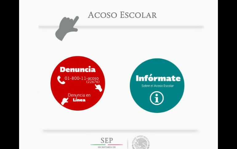 México | El portal contiene algunas alternativas para resolver los conflictos en forma pacífica La SEP crea portal para atender acoso escolar La dependencia informa que esta página cuenta con apartados para alumnos, docentes y familias Por: NTX 13 de junio de 2014 - 12:04 hs La SEP pone en marcha el portal para atender, prevenir y dar información sobre este fenómeno. / CIUDAD DE MÉXICO (13/JUN/2014).- La Secretaría de Educación Pública ( SEP) puso en marcha el portal www.acosoescolar.sep.gob.mx y la línea telefónica 01800-11-ACOSO (22676) para atender, prevenir, dar información y recibir denuncias sobre este fenómeno. En un comunicado, la dependencia informó que esta página de internet cuenta con apartados para alumnos, docentes y familias, así como la sección "Lo que debes saber", en los que explican detalles sobre este problema. Además de orientar en qué consiste este fenómeno, se explican las diferencias entre lo que es el acoso escolar y otras conductas de maltrato o violencia que algunos adultos pueden ejercer sobre los menores o entre los alumnos y que no se consideran como tal. El portal contiene algunas alternativas para resolver estos conflictos en forma pacífica, además de orientar a los docentes sobre algunas características del acoso escolar, como la intencionalidad de un menor para cometer estas acciones. Además, explica la persistencia de este fenómeno y por qué se repiten durante un tiempo, así como la asimetría de poder, que se refiere a un desequilibrio y desigualdad de fuerza entre los participantes del acoso y la naturaleza social del fenómeno. En el apartado de familia el portal reconoce la valiosa colaboración de los padres en educar a la infancia, por lo que considera que uniendo esfuerzos se pueden prevenir y corregir las faltas de respeto y el comportamiento violento de niños y adolescentes. En ese sentido, el portal explica a mamás y papás algunas señales que revelan el acoso que pueden estar sufriendo sus hijos, como el hecho de que les hagan bromas pesadas con frecuencia, el uso de apodos ofensivos y el que sean puestos en ridículo. Además, la pérdida de libros o dinero, que no les guste salir al recreo o que busquen quedarse cerca de los profesores; inseguridad o miedo para hablar delante de sus compañeros; notas ofensivas en sus cuadernos; tristeza o preocupación; carencia de amigos y miedo de ir a la escuela. Entre las recomendaciones que se hacen en el portal está el que los padres de familia reconozcan que sus hijos tienen algún problema, que platiquen con ellos y que asuman que el acoso no es normal ni debe justificarse. Hacer sentir al menor que su familia lo protege es fundamental para que confíe en sus padres y hable del problema, para lo cual se recomienda que le permitan desahogarse, no juzgarlo y no interrumpirlo en sus relatos o exigir explicaciones. "Es primordial que el menor sepa que no es culpable de los hechos, y que lo ayudará a superar este momento acudiendo a la escuela a hablar con profesores y directivos y buscar una solución entre todos", puntualizó. Temas Internet SEP Estados Bullying Lee También ¿Bad Bunny fuera del Super Bowl? Este sería el show alternativo Poza Rica, inundado por desbordamiento del río Cazones Bad Bunny permanece sentado durante "God Bless America" y enciende las redes Lista actualizada de selecciones que ya clasificaron al Mundial 2026 Recibe las últimas noticias en tu e-mail Todo lo que necesitas saber para comenzar tu día Registrarse implica aceptar los Términos y Condiciones