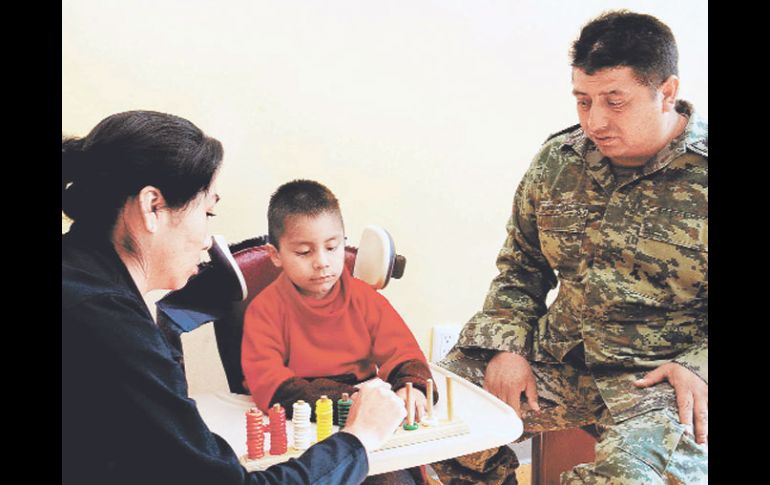 México | El año pasado asistió a cuatro mil pacientes La Sedena también atiende discapacidad El Centro de Rehabilitación Infantil ofrece atención médica integral a hijos de derechohabientes del Ejército y la Fuerza Aérea Por: SUN 27 de marzo de 2011 - 07:49 hs Hugo Escamilla recibe terapia junto con su hijo Isaac que tiene autismo. EL UNIVERSAL / CIUDAD DE MÉXICO (27/MAR/2011).- Esta historia comenzó hace cinco años nueve meses el día en que Isaac César nació con autismo. Su padre Hugo Escamilla, capitán segundo de zapadores del Ejército Mexicano, no lograba aceptar el trastorno de su hijo recién nacido. Y Belem, su madre tampoco entendía por qué su tercer hijo había nacido con discapacidad; pero una mañana Hugo notó como los ojos de Isaac lo seguían y entonces nació su esperanza. Fue entonces cuando decidieron “dar parte “ a sus superiores de lo acontecido con su hijo, ante lo cual la Secretaría de la Defensa Nacional (Sedena) les indicó asistir al Centro de Rehabilitación Infantil (CRI) el cual fue inaugurado por el general Rafael Galván Galván, secretario de la Sedena, en septiembre de 2008. Ciertamente en el pasado la dependencia daba atención integral para los adultos y niños con discapacidad, pero fue a partir de 2008 que se destinó un espacio exclusivo para niños menores de 15 años. El CRI surgió entonces en el Campo Militar Número Uno, como una institución creada para proporcionar atención médica integral en rehabilitación infantil, (a niños de cero a 15 años) para los hijos con discapacidad de los derechohabientes del Ejército y la Fuerza Aérea mexicanos. Tan sólo en el año 2010, este centro brindó atención a cuatro mil 619 pacientes, que asistieron a un total de 36 mil consultas médicas, con un promedio de mil terapias por día. En este lugar cuentan con un espacio casa para la vida, con cocina, cuartos, camas , para que los niños con discapacidad desarrollen al máximo sus habilidades en lo cotidiano. Un diario capitalino accedió a las instalaciones de la Sedena para conocer la superficie de construcción de dos mil 800 metros cuadrados, que otorga atención médica y terapias de rehabilitación para aquellos diagnósticos más frecuentes, es decir: epilepsia; parálisis cerebral infantil; trastorno sicomotor, parálisis cerebral espástica; perturbación de la actividad de la atención; trastornos por déficit de atención; trastornos del desarrollo del habla y del lenguaje; trastornos generalizados del desarrollo; hiperactividad; autismo de la niñez, y Síndrome de Down. Firmes ante el reto de Isaac Esa mañana, durante la terapia de su hijo, Hugo y Belem toman entre sus manos unas donas de colores y piden a Isaac que coloque el amarillo en su lugar, luego el rojo, después el verde , y a base de repetirlo Isaac lo logra. Y es que sin duda, el capitán Hugo Escamilla, es un hombre que sabe de armas, pero esta vez tuvo que armarse de paciencia, de valor, armarse de comprensión y nuevos conocimientos ante su hijo autista. En este sentido era necesario que el diagnóstico fuera temprano, para que la terapia y la medicina ayudaran a su rehabilitación. Lo mismo hizo Belem; y fue así como Isaac comenzó a recibir terapias desde los primeros meses de vida, “para intentar que se integrara a nuestra cotidianeidad, o para que nosotros aprendiéramos a entrar a ese mundo paralelo en el que nuestro hijo vive”, dicen. “Pedí permiso a mis superiores para asistir a las terapias de mi hijo, y lo hago una vez a la semana sin falta. Mientras yo viva, mi hijo tendrá toda mi atención. Me interesa que sea un niño autosuficiente y logre una vida productiva en la medida de lo posible”, comenta el capitán Escamilla. “No quiero que Isaac sea una carga para sus hermanos. Mi hijo no es un objeto como para que se le considere una carga. Es un ser humano que merece ser atendido y evolucionar; y nosotros como familia, también debemos evolucionar para tratar de entender el autismo de Isaac”. “Nadie está preparado para eso y para el autismo no hay recetas mágicas, cada caso es diferente y requiere atención individualizada”, comentan. Ahora, Belem y Hugo saben que el Trastorno del Espectro Autista (TEA), es una condición que afecta de forma variable el desarrollo del cerebro de su niño, generando notables alteraciones en la comunicación articulada y comprensiva de Isaac con el mundo que lo rodea. También supieron que en principio el futuro de Isaac dependería en gran parte de las responsabilidades iniciales que ellos decidieran asumir como padres ante la discapacidad de su hijo. Entre estas responsabilidades está: acudir una vez a la semana a varias terapias que sin ningún costo recibe su hijo en el CRI: terapia de estimulación neuromotora; terapia ocupacional; hidroterapia; gimnasio y equinoterapia, así como a la escuela para padres. El costo de una sola de estas terapias, (si lo hicieran de modo particular) sería de aproximadamente 600 pesos por 30 minutos. En la Escuela de Padres del CRI, estos trabajan con sicólogos, pedagogos, y médicos especialistas, para lograr que el niño viva en un núcleo familiar adecuado y que este no interfiera de manera negativa en el pronóstico del menor. Los padres también se capacitan para eliminar los prejuicios que contribuyen a fomentar la discriminación a personas con discapacidad. El Centro de Rehabilitación Infantil, a decir de la teniente coronel Nazarea Herrera Maldonado, la institución que dirige desde su inauguración, maneja un modelo de atención integral único en el país, que fue creado a partir de la asesoría de instituciones nacionales e internacional con experiencia en el tema de la discapacidad; “este centro fue creado por arquitectos e ingenieros militares”, comenta. La institución tiene además, un hotel o alojamiento foráneo para 15 familias y parientes que provienen en su mayor parte de Veracruz, Guanajuato, Oaxaca, Guerrero y Michoacán, esta