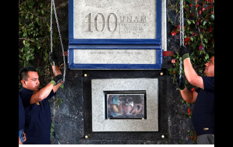 México | La caja de acero inoxidable contiene ocho mil 432 archivos y será abierta en 50 años La UNAM sella ‘‘cápsula del tiempo’’ para futuras generaciones La caja de acero inoxidable contiene ocho mil 432 archivos y será abierta en 50 años Por: SUN 17 de noviembre de 2010 - 03:15 hs El rector, José Narro Robles, colocó la caja de acero inoxidable que contiene ocho mil 432 archivos. EL UNIVERSAL / CIUDAD DE MÉXICO (17/NOV/2010).- La Universidad Nacional Autónoma de México (UNAM) selló en la explanada de la Ciudad Universitaria su “cápsula del tiempo UNAM 100 años”, con la cual se recordará entre mensajes, libros, fotografías, videos y detalles del equipo de futbol, a todos los universitarios que han utilizado las aulas, espacios culturales y deportivos del instituto. El rector, José Narro Robles, colocó la caja de acero inoxidable que contiene ocho mil 432 archivos; aseguró que en 50 años, cuando la cápsula se abra de nuevo, los futuros estudiantes conocerán la historia de la universidad a través de los recuerdos guardados. Temas UNAM Estados José Narro Robles Lee También Trump dijo merecer Nobel de la Paz por haber "terminado con siete guerras" ¿Trump ganaría el Nobel de la Paz? Veteranos del Comité de premiación responden "Raymond" aparecerá en horas y afectará a estos estados por su trayectoria TODO sobre el frente frío que perturbará a México en horas Recibe las últimas noticias en tu e-mail Todo lo que necesitas saber para comenzar tu día Registrarse implica aceptar los Términos y Condiciones